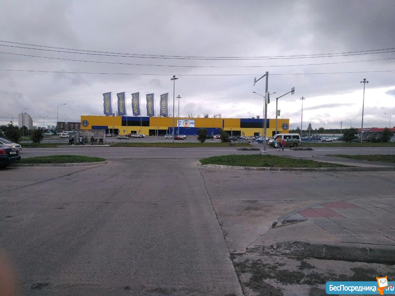 2)Сразу за окном торговый центр с кинотеатром и фермерским рынком, неподалеку еще несколько торговых центров, гипермаркеты "Лента" и "Леруа Мерлен", Алекс-фитнес