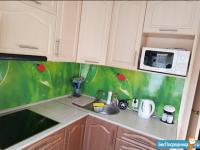 Кухня: кухонный гарнитур, стол, тубаретки, плита стеклокерамика +духовка, посудомоечная машина, чайник, холодильник, посуда.