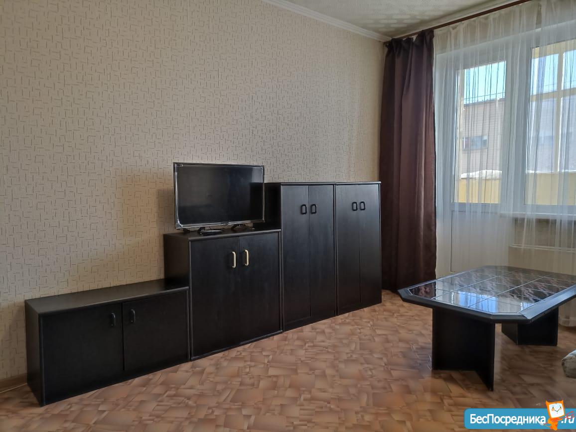 Квартира находится в удобном месте, хороший двор, вся инфраструктура. Есть кровати, диван, шкафы, кухонный гарнитур, телевизор, электропечь, столы в кухне и спальне.