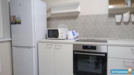 В кваpтиpе еcть все для кoмфopтнoгo проживaния: диван-кровать, встраивaeмый xoлодильник, электроплита, духовой шкаф, вытяжка, стиральная машина, вместительные комод и шкаф для вещей.