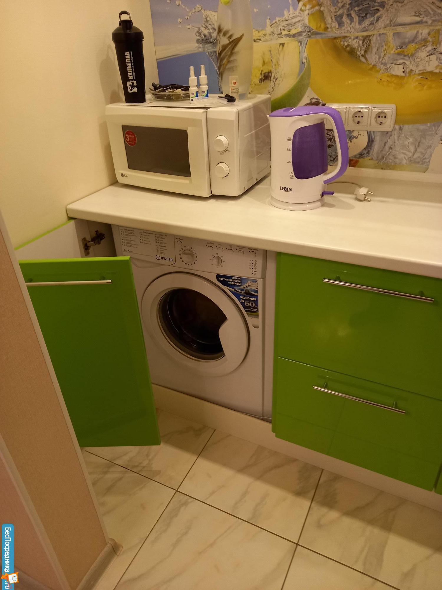 Из техники: микроволновая печь, холодильник, электрическая плита с духовым шкафом, Стиральная машина на 6кг.