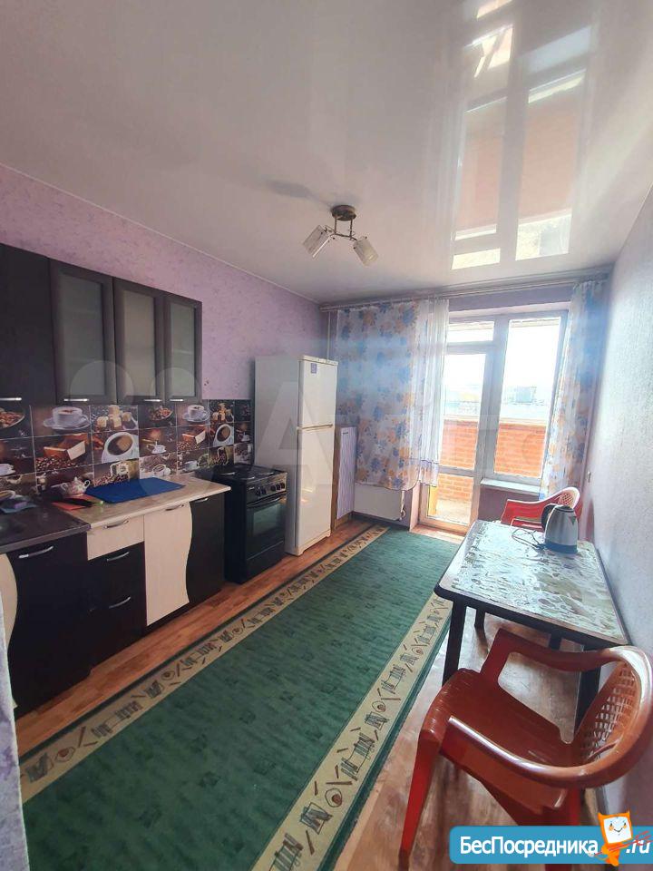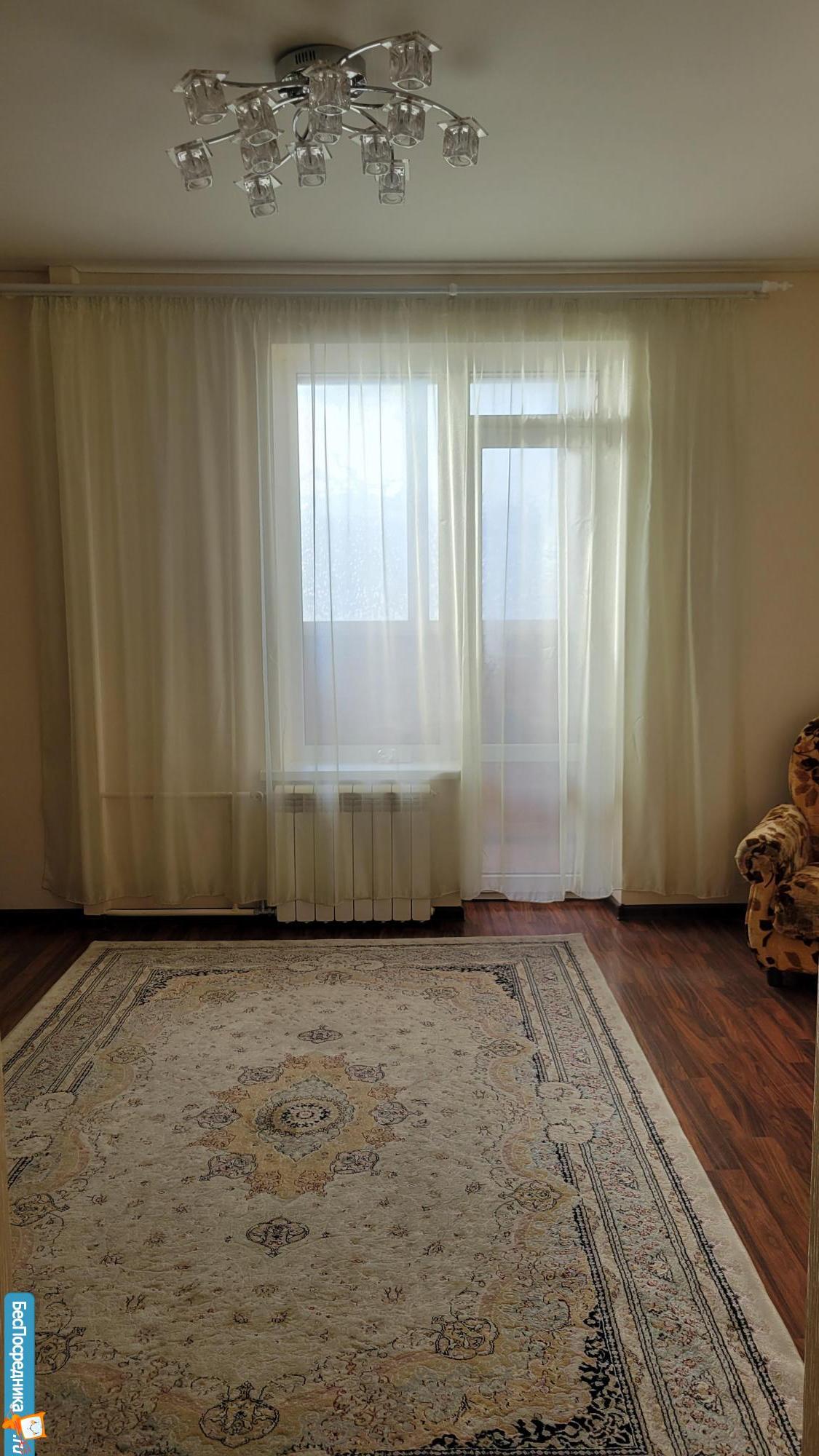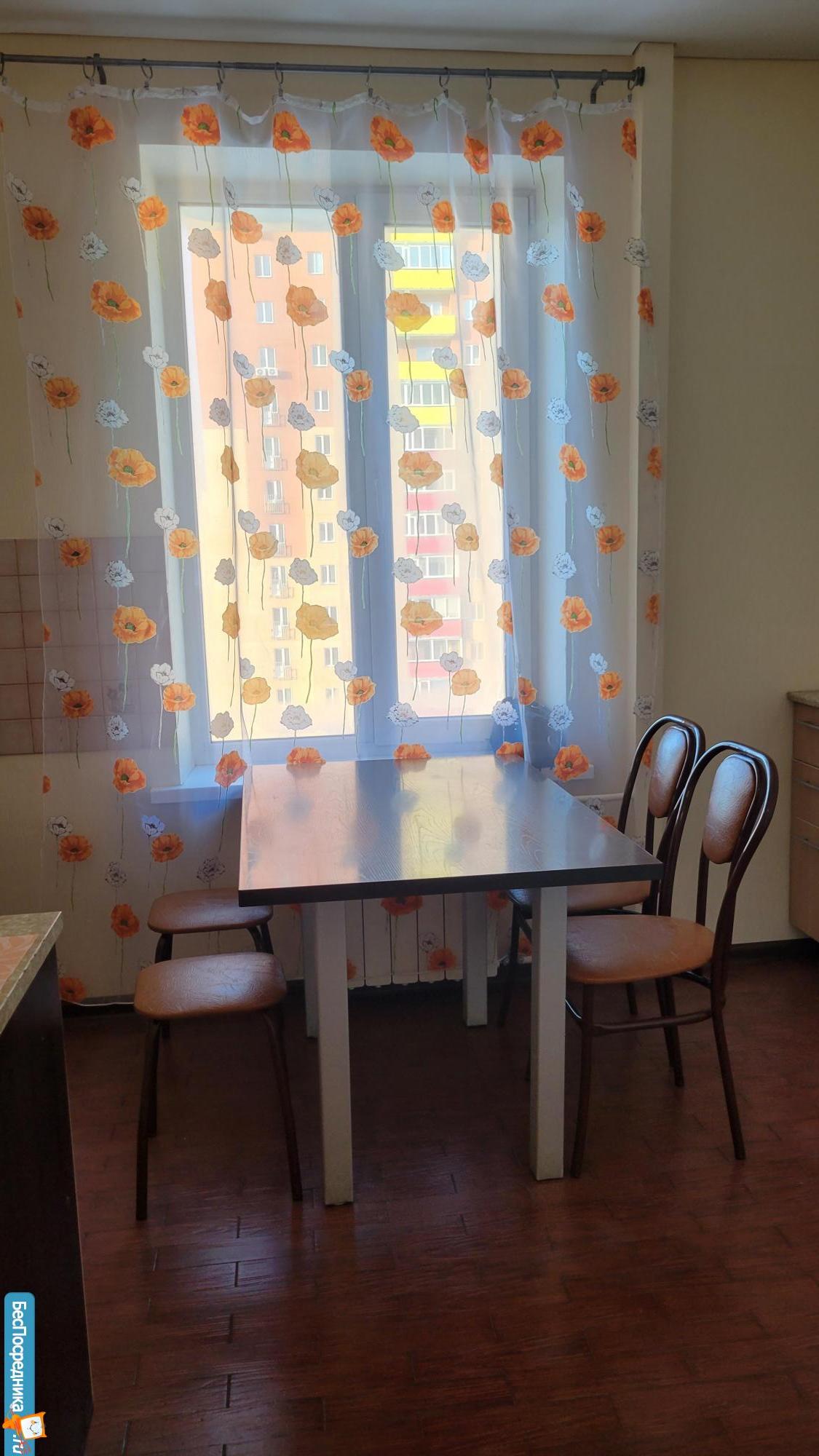 СОБСТВЕННИК. Чистая, просторная, светлая, в свежем состоянии. Окна пластиковые. Большая лоджия застеклена. На полу линолеум. Стены - обои, в санузле - покраска. Из мебели кухонный гарнитур с мойкой и электропечью, в прихожей шкаф для одежды. Другой мебели и техники нет. Дополнительно оплата за воду и электроэнергию по счётчикам.