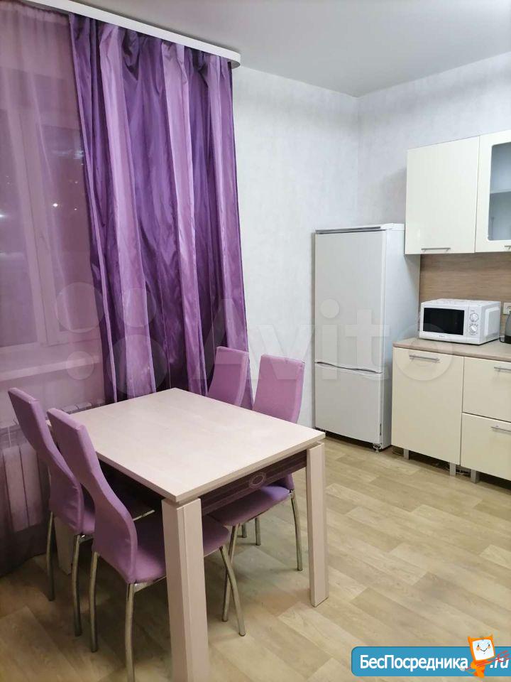 Квартира после ремонта , в хорошем жилом комплексе , на территории две детские площадки , футбольное поле . Двор охраняемый . 3 мин. ходьбы от метро Сибирский Молл. Из мебели только кухонный гарнитур (без бытовой техники ) . На длительный срок.