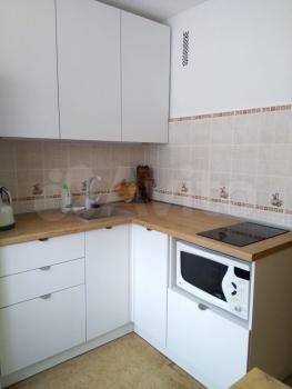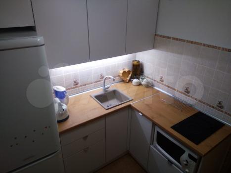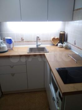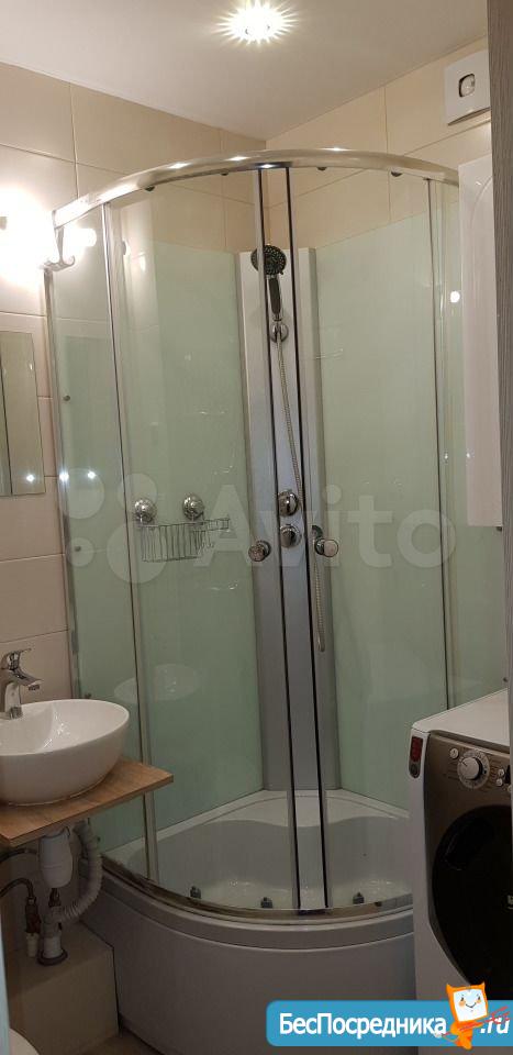 Полностью укомплектованная кухня (плита стеклокерамика 4 конфорки, с духовкой, холодильник, микроволновка, чайник). Стиральная машина.