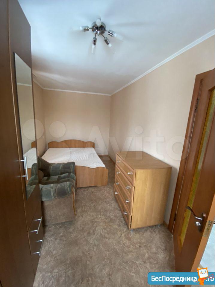 Кирпичный дом, 42,5 м кв, балкон, состояние после ремонта, спальня- шкаф, комод, кровать двухспальная,