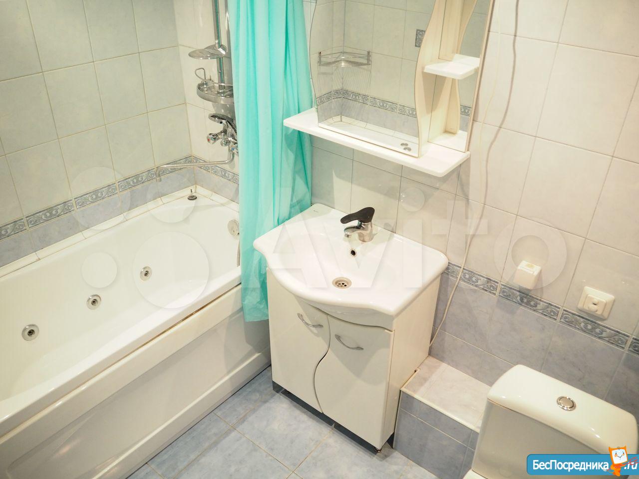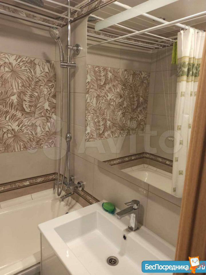 В квартире хороший ремонт в комнатах ПВХ плитка на полу, в кухне, прихожей и санузла плитка на полу, в санузла на стенах плитка белая, батареи современные, пластиковые окна, бытовая техника (2 метровый холодильник, СВЧ, мультиварка, духовой шкаф, индукционная плита, чайник, утюг, стиральная машинка, роутер), мебель (кухонный гарнитур, стол, 4 табурета; в ванне зеркало-шкаф, тумба с раковиной; прихожая вместииельная, полки для обуви, зеркало; в детской: кровать, парта, ортопедический стул, стенка под хранение вещей; во второй комнате: батут, спортивный комплекс, комод, сушилка для белья, гладильная доска; в зале: угловой диван, шкаф для вещей, плечики, большой очень вместительный комод), на окнах везде тюль, на кухне роликовые шторы блэкаут). Есть застекленная лоджия.