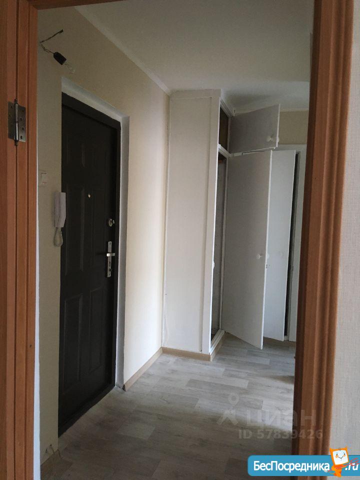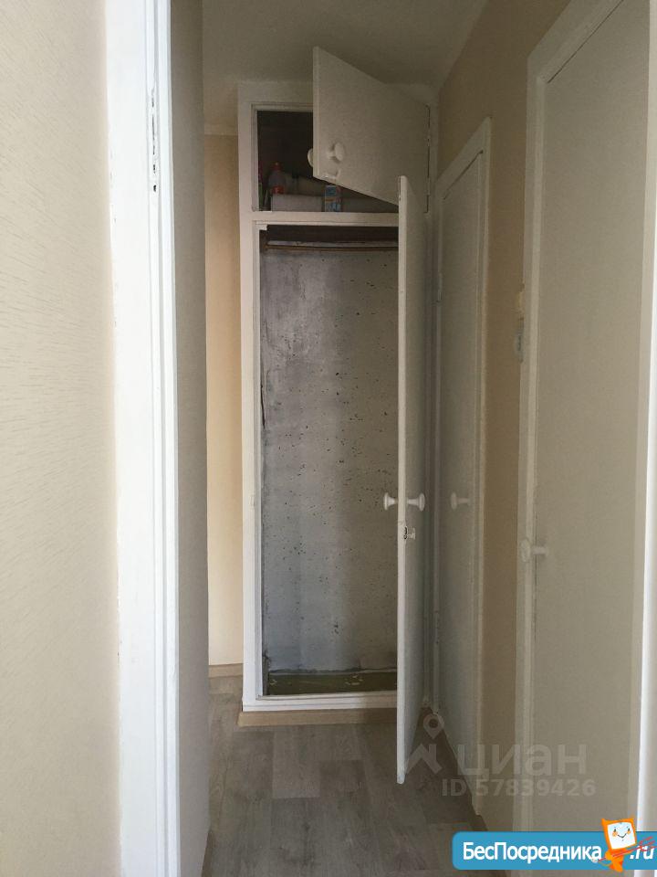 Прихожая с большими встроенными шкафами, пластиковые окна, холодильник, плита, балкон, лоджия.