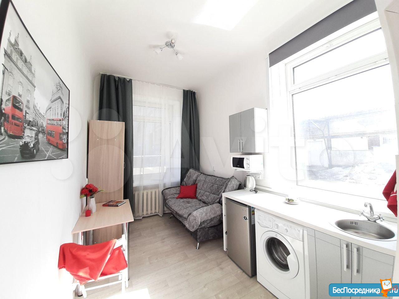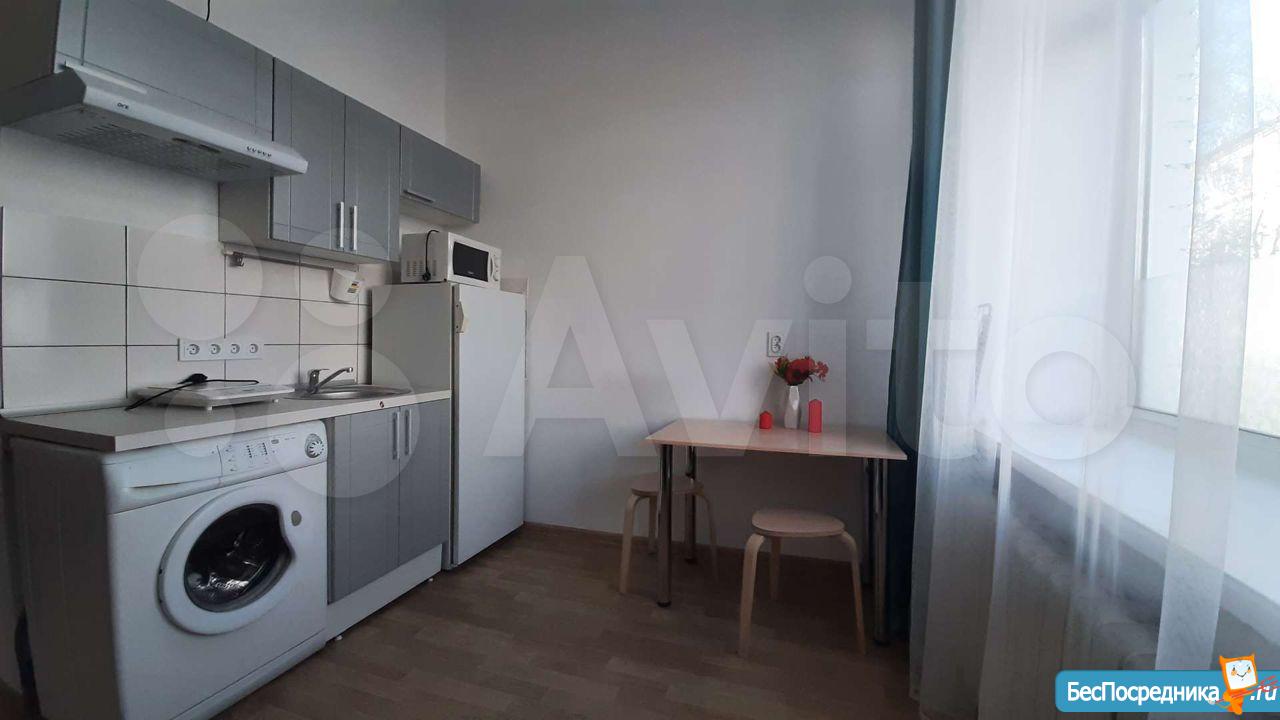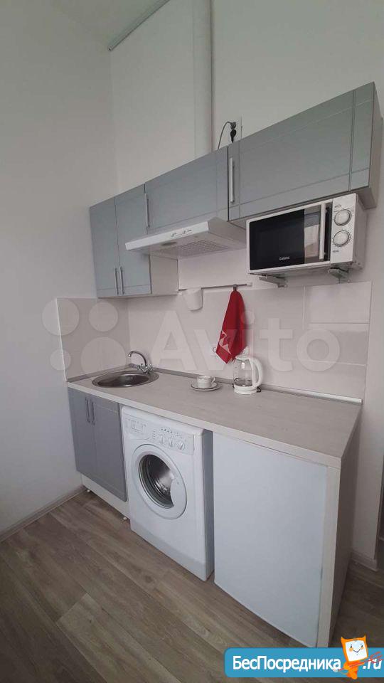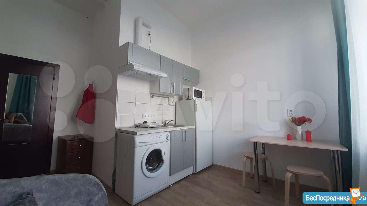 Сдается уютная светлая студия на длительный срок! От собственника! Уникальный для данного микрорайона формат: заходя в дом вместо унылого обшарпанного подъезда вы сразу попадаете в уютную домашнюю обстановку светлой парадной. В самой студии сделан свежий качественный ремонт, установлена новая мебель и техника. Есть все необходимое для комфортного проживания: удобная кровать, обеденная зона, кухня со всей необходимой техникой (в том числе: стиральная машина автомат, индукционная плита, холодильник, микроволновка). Санузел с качественным ремонтом. Также к достоинствам данной студии нужно отнести: огромные пластиковые окна, высокие потолки, грамотную планировку, делающую комфортным проживание одного или двух человек.