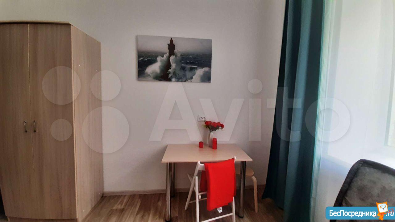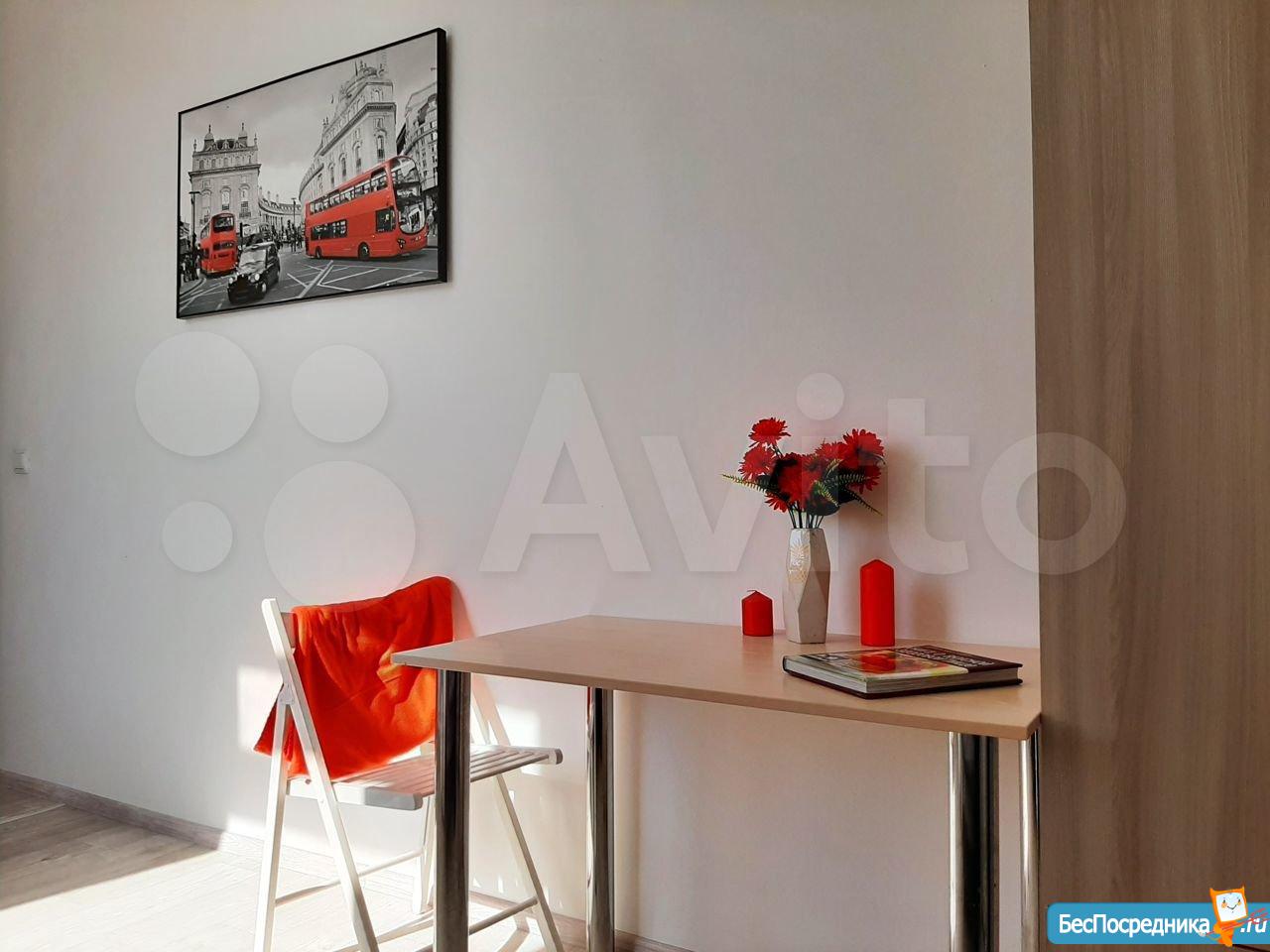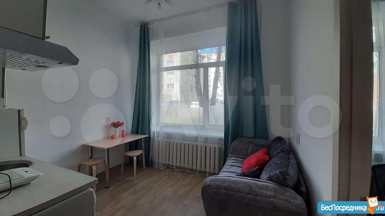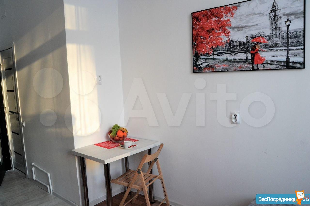 Сдается уютная светлая студия на длительный срок! От собственника! Уникальный для данного микрорайона формат: заходя в дом вместо унылого обшарпанного подъезда вы сразу попадаете в уютную домашнюю обстановку светлой парадной. В самой студии сделан свежий качественный ремонт, установлена новая мебель и техника. Есть все необходимое для комфортного проживания: удобная кровать, обеденная зона, кухня со всей необходимой техникой (в том числе: стиральная машина автомат, индукционная плита, холодильник, микроволновка). Санузел с качественным ремонтом. Также к достоинствам данной студии нужно отнести: огромные пластиковые окна, высокие потолки, грамотную планировку, делающую комфортным проживание одного или двух человек.