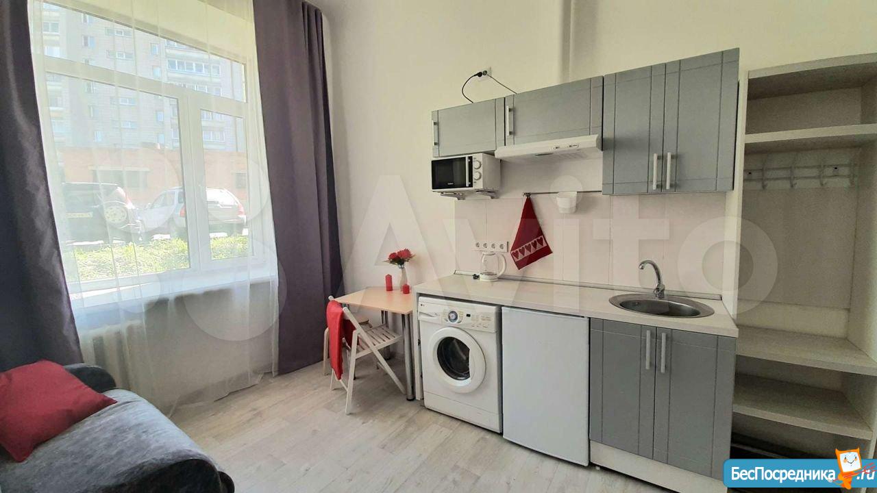 Сдается светлая студия на длительный срок! От собственника! Уникальный для данного микрорайона формат: заходя в дом вместо унылого обшарпанного подъезда вы сразу попадаете в уютную домашнюю обстановку светлой парадной. В самой студии сделан свежий качественный ремонт, установлена новая мебель и техника. Есть все необходимое для комфортного проживания: удобная кровать, обеденная зона, кухня со всей необходимой техникой (в том числе: стиральная машина автомат, индукционная плита, холодильник, микроволновка). Также к достоинствам данной студии нужно отнести: огромные пластиковые окна, высокие потолки, грамотную планировку, делающую комфортным проживание одного или двух человек.