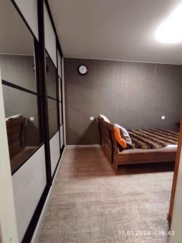 В квартире имеется: кухонный гарнитур, кухонная мебель, плита, духовка, вытяжка, микроволновая печь, чайник, холодильник, стиральная машина. Шкаф, кровать двуспальная, телевизор.