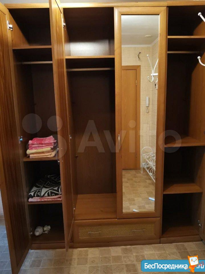 В квартире имеется: кухонный гарнитур, кухонная мебель, плита, духовка, вытяжка, микроволновая печь, чайник, холодильник, стиральная машина. Шкаф, кровать двуспальняя, телевизор.