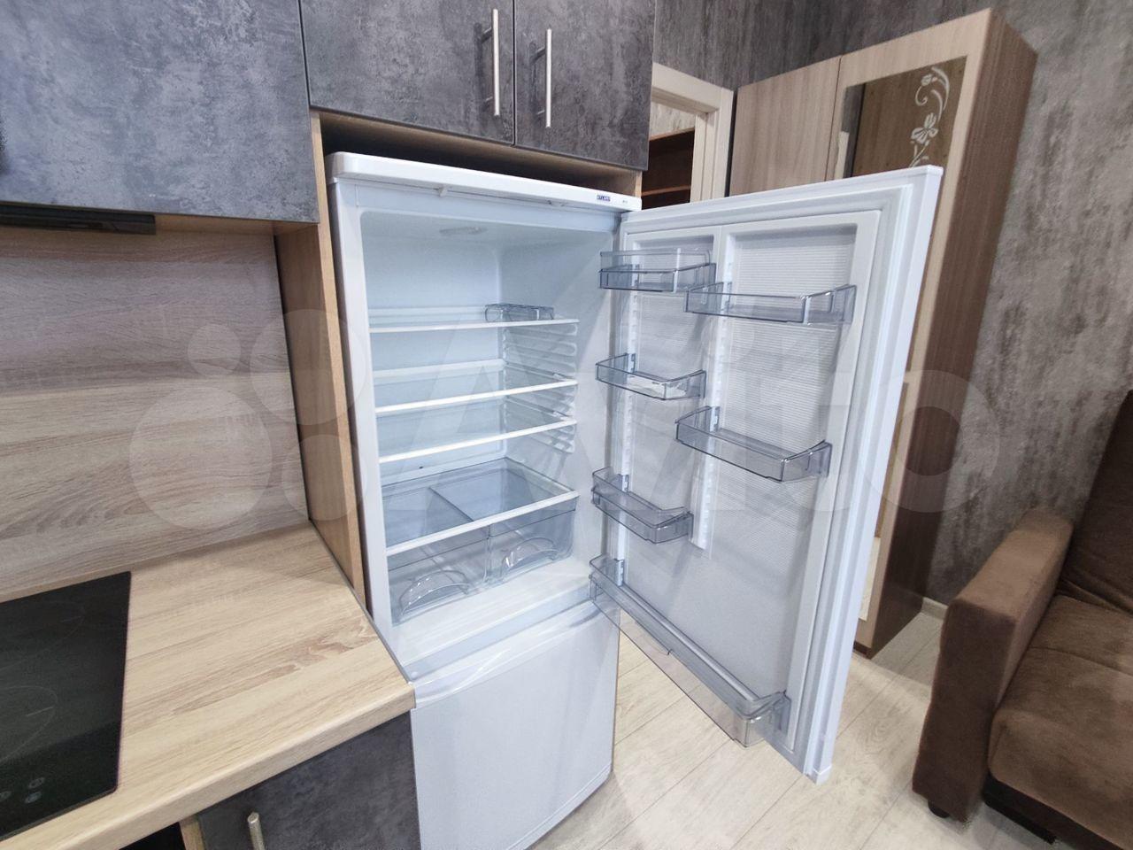 холодильник, плита, микроволновка, стиральная машина, телевизор.