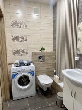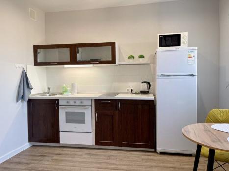 В квартире имеется все необходимое для проживания - два двуспальных дивана, мебель, телевизор, холодильник, стиральная машина, микроволновая печь, индукционная плита.