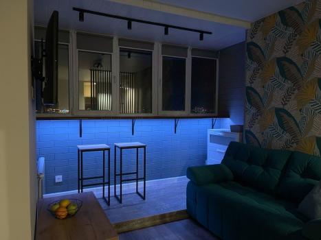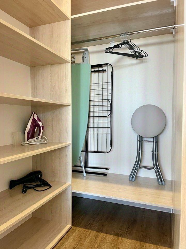 В квартире есть всё необходимое для проживания. Просторная гардеробная. Зона сна с двуспальной кроватью, кухонная зона и зона отдыха с диваном и телевизором, в.