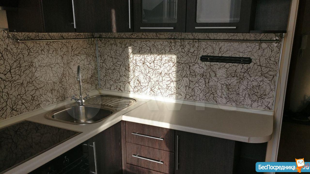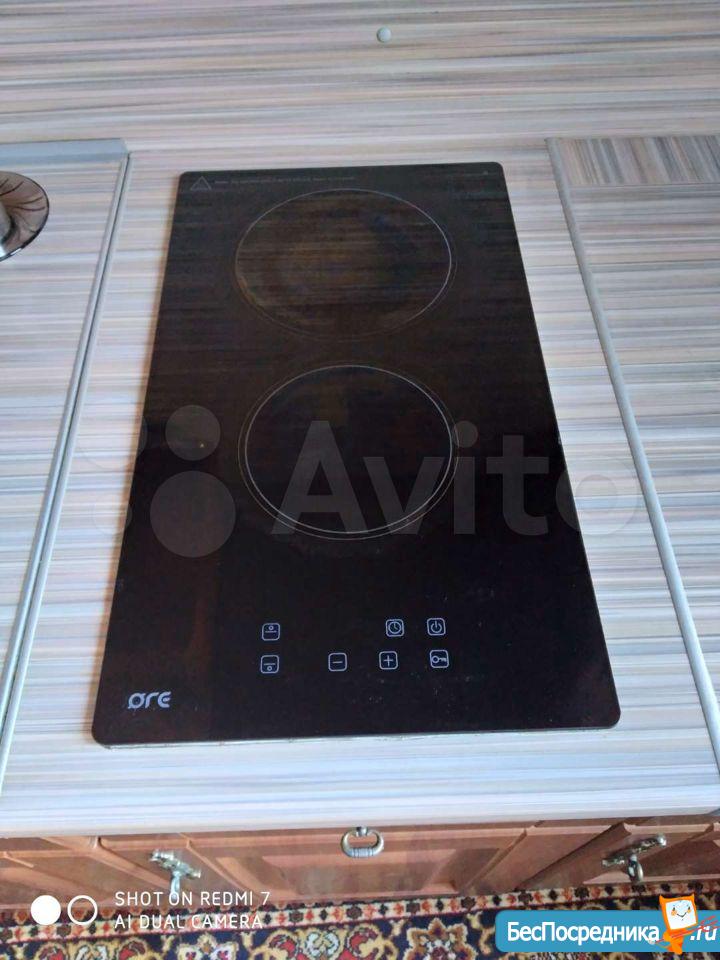 На кухне - гарнитур, вся фурнитура с доводчиками, стол и 2 стула, варочная панель, духовка, холодильник, микроволновка, чайник.