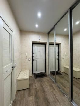 В квартире свежий, современный ремонт, натяжные потолки, дорогая сантехника, подогрев полов (коридор, сан. узел, кухня), имеется балкон, окна выходят во двор.