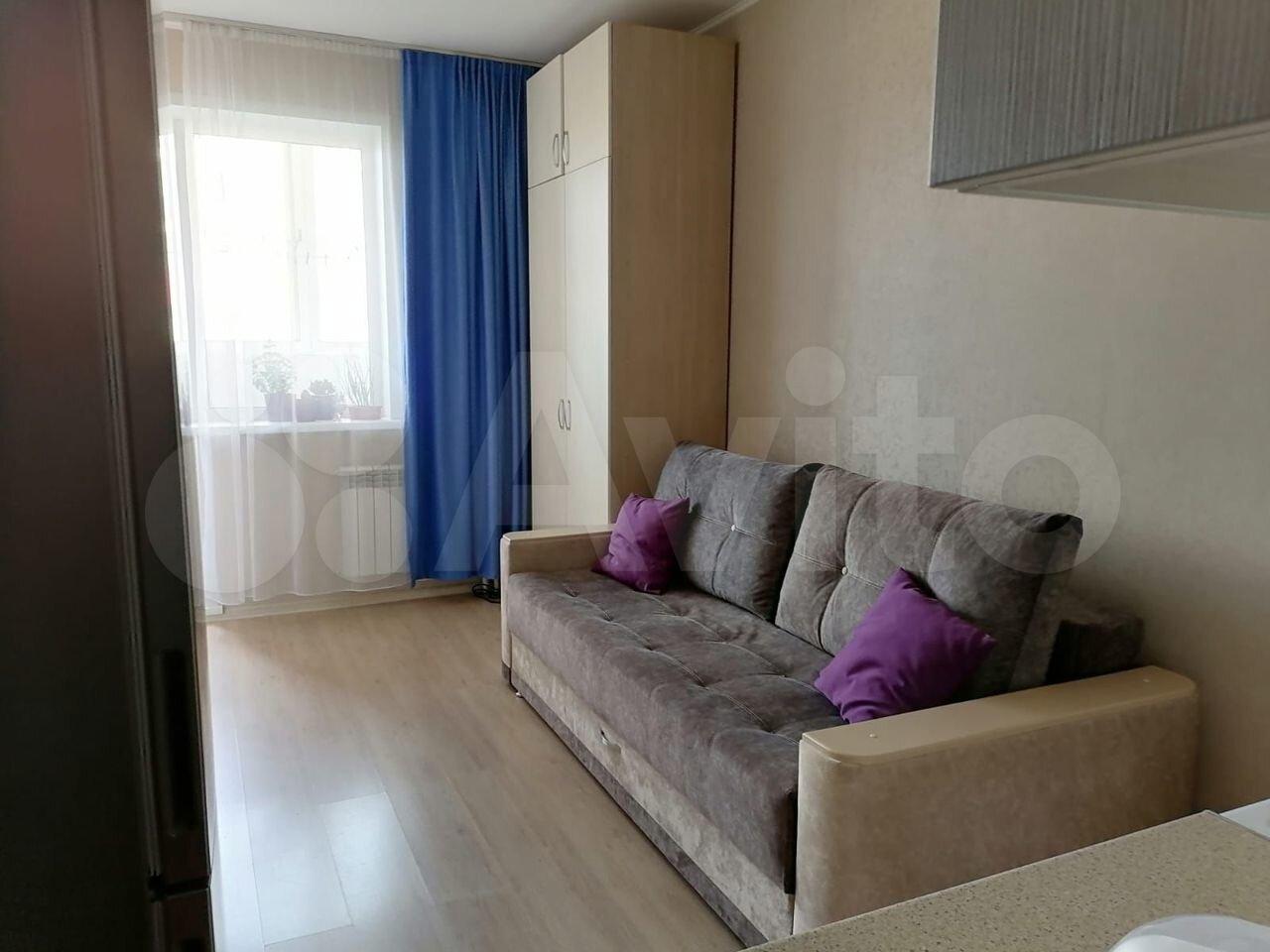 Уютная студия с мебелью и техникой. В доме видеокамеры и консьерж. Магазины, остановки, парк, банки в шаговой доступности.