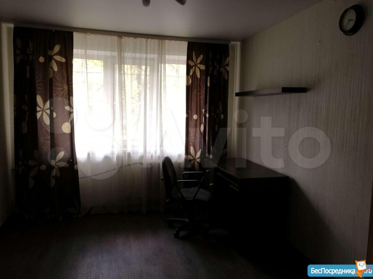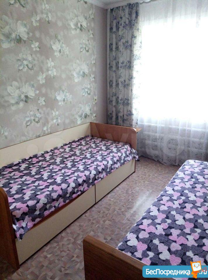Сдам двухкомнатную квартиру на длительный срок. Комнаты смежные, санузел совмещённый. Два спальных места