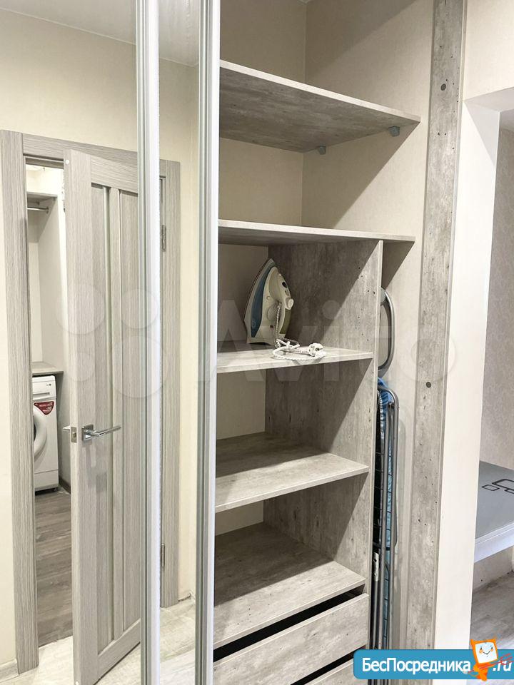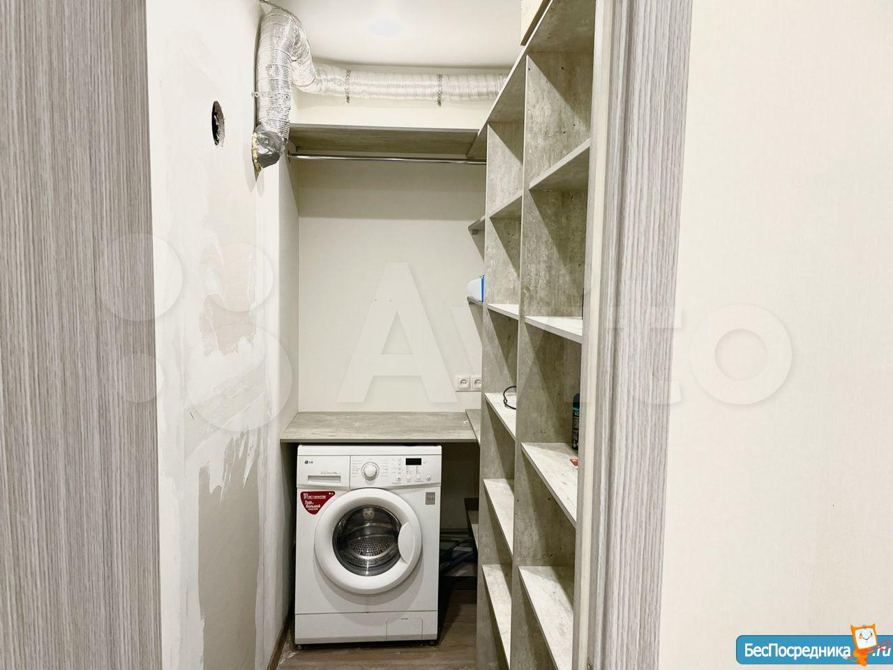 В прихожей новый встроенный шкаф с зеркальными дверями, отдельная гардеробная (см. Фото где стиральная машина), современный ремонт и обстановка.