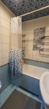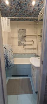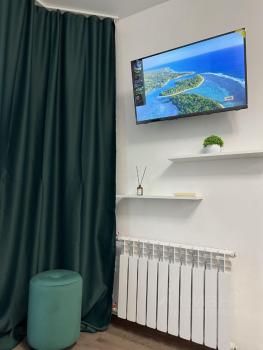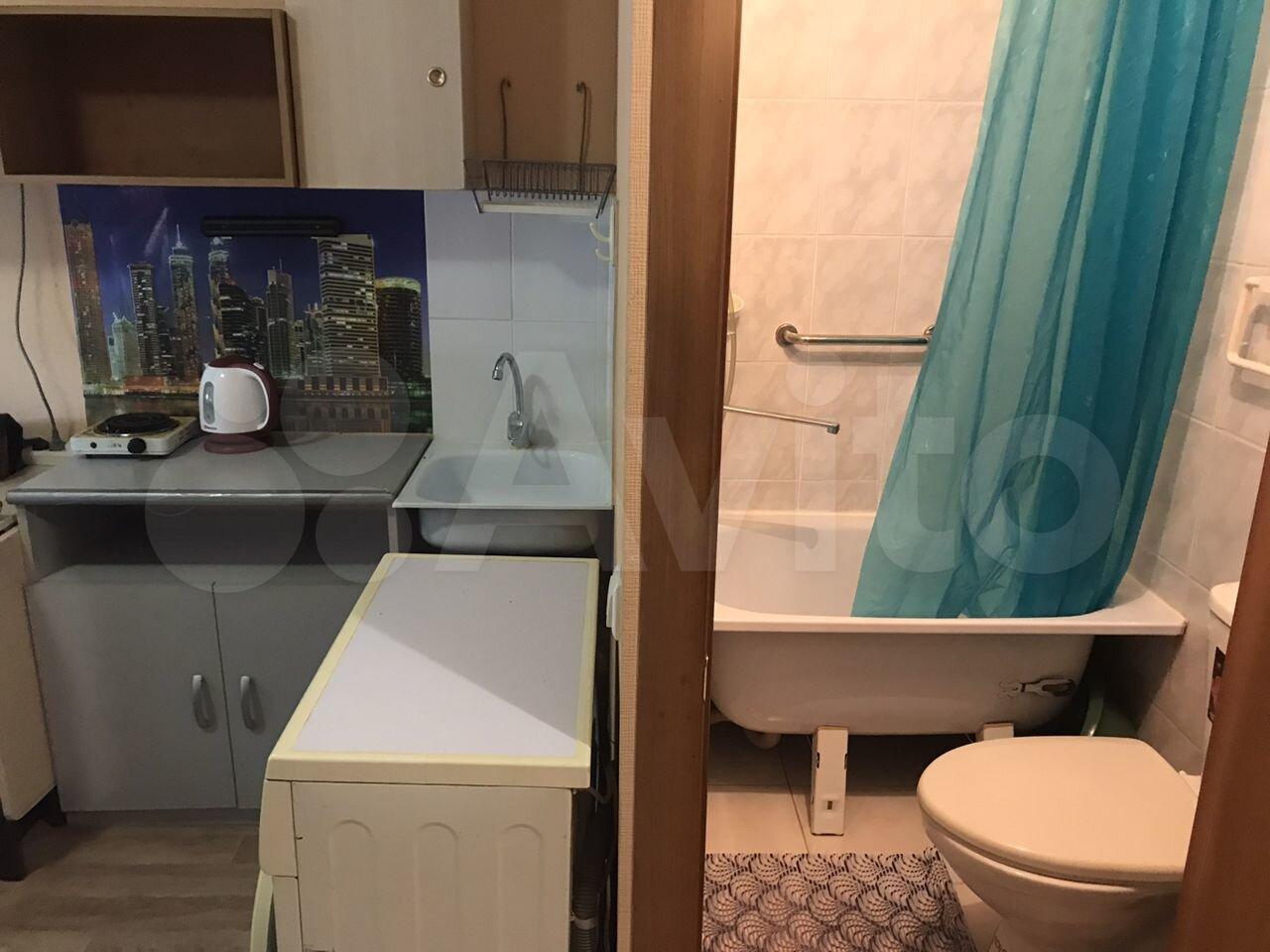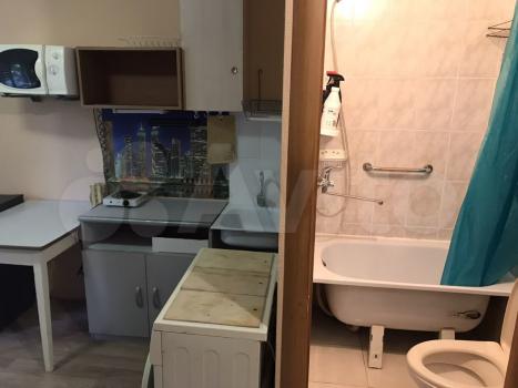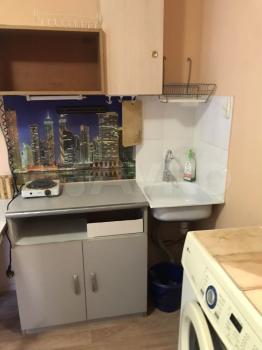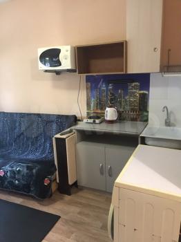 Небольшая студия 14 м2 по типу гостиничного номера (это значит всё в одной комнате- и спите, и готовите, и стираете). По сути это не квартира, а комната с отдельным входом и санузлом. Нормальный ремонт, есть ВСЁ необходимое: ванна, туалет, стиральная машина автомат, микроволновка, чайник, конфорка, холодильник. Телевидение с функцией перемотки/паузы + WiFi