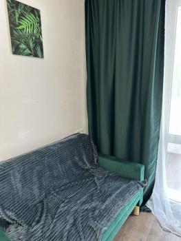 Ухоженная студия со свежим ремонтом, пол ламинат , потолок плитка, пластиковое окно, чистая ванна и туалет.дивану стиралке и холодильнику один год. Сдача лицам русской национальности (по просьбе соседей).