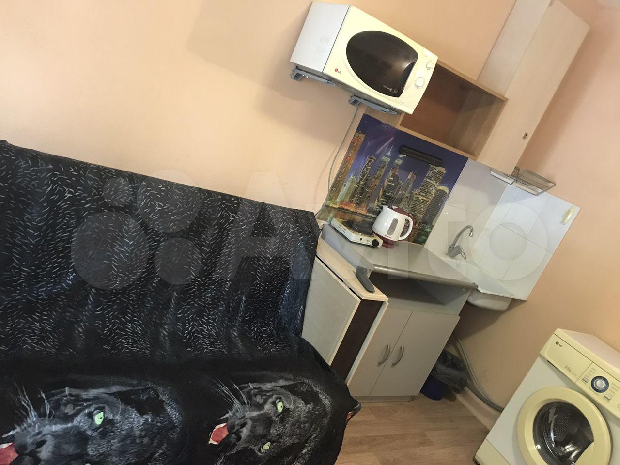 Небольшая студия 14 м2 по типу гостиничного номера (это значит всё в одной комнате- и спите, и готовите, и стираете). Нормальный ремонт, есть ВСЁ необходимое: ванна, туалет, стиральная машина автомат, микроволновка, чайник, конфорка, холодильник. Телевидение с функцией перемотки/паузы + WiFi