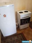 В комнате есть холодильник, стенка, телевизор, печка ( нужно подключить), несколько кресел.