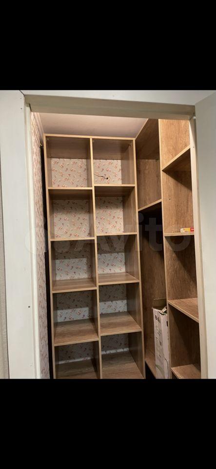 В комнатах - большой шкаф со стеллажами, диван.
