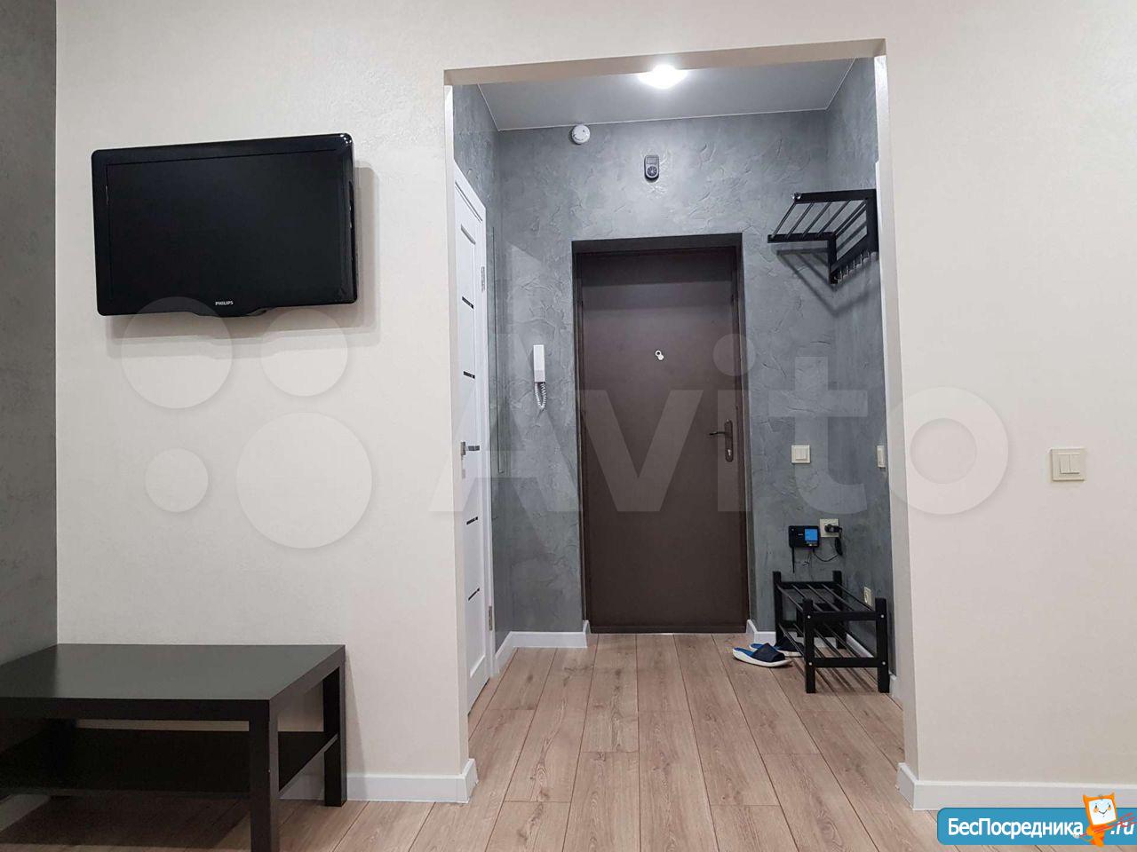 Квартира новая, жили 2 года, все есть кроме телевизора и кондиционера! Имеется большая гардеробная с зеркальными в пол раздвижными дверями!