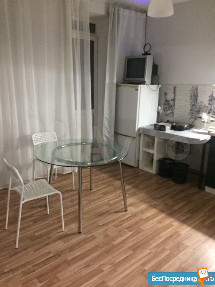 Сдаю чистую уютную студию на длительный срок. В квартире есть телевизор, холодильник, микроволновка, стиральная машина. В шаговой доступности остановки, магазины, детский сад.