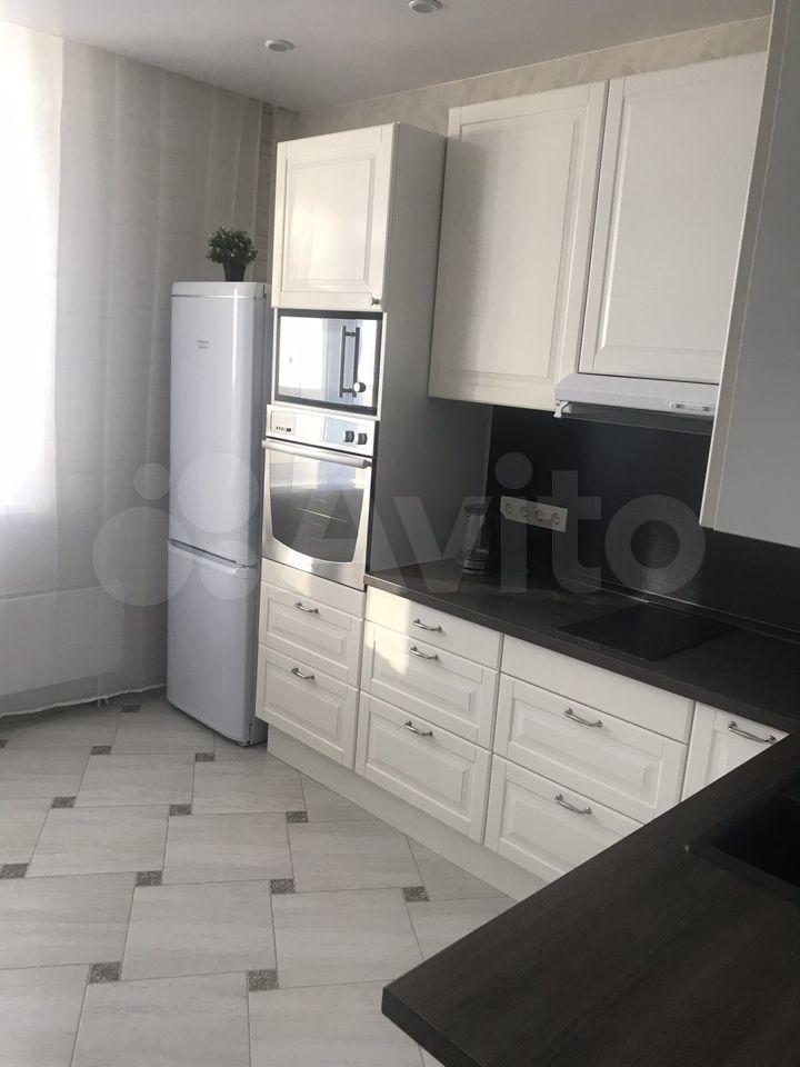 На кухне: варочная панель, духовой шкаф, холодильник, посудомойка.