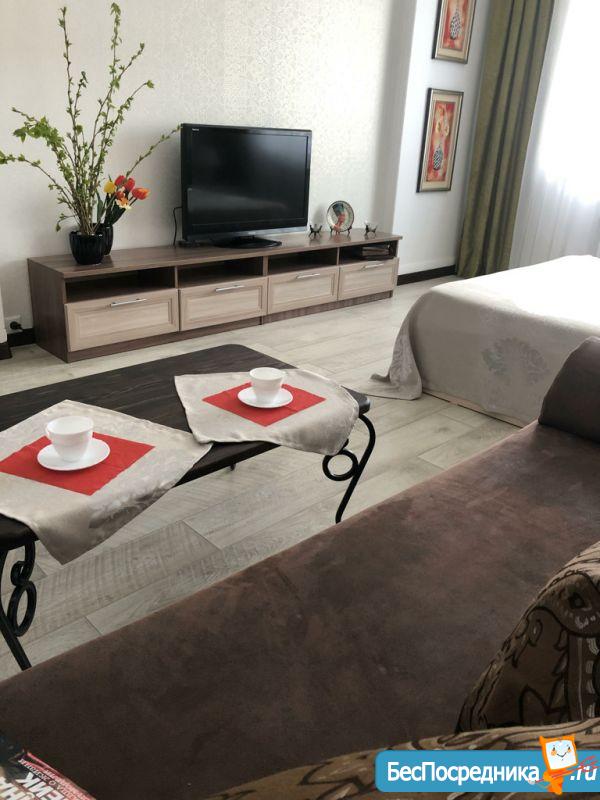 Сдаётся отличная Студия с качественным дорогим ремонтом, в квартиру есть все необходимое, вся Техника, интернет, потрясающий вид из окна, центр города, все в пешей доступности! В стоимость все включено