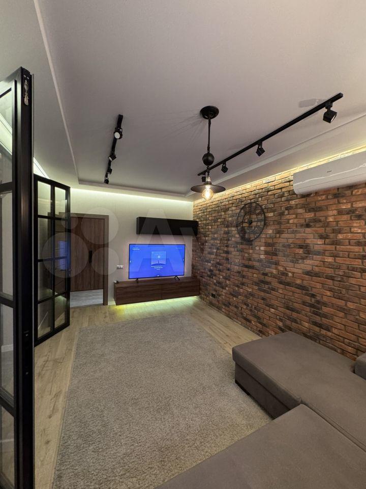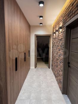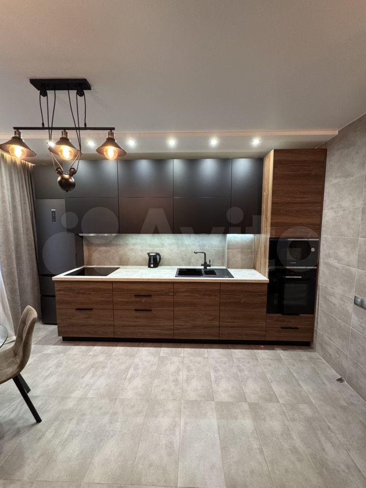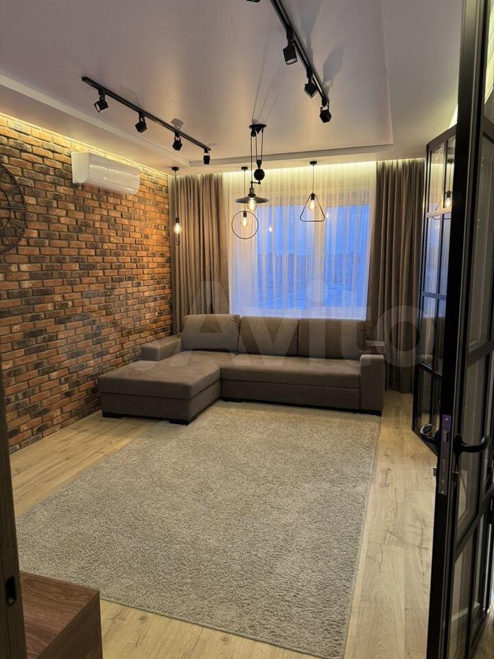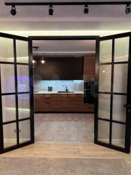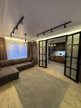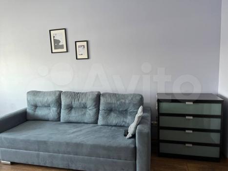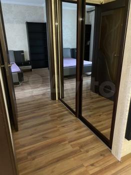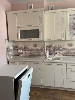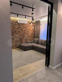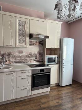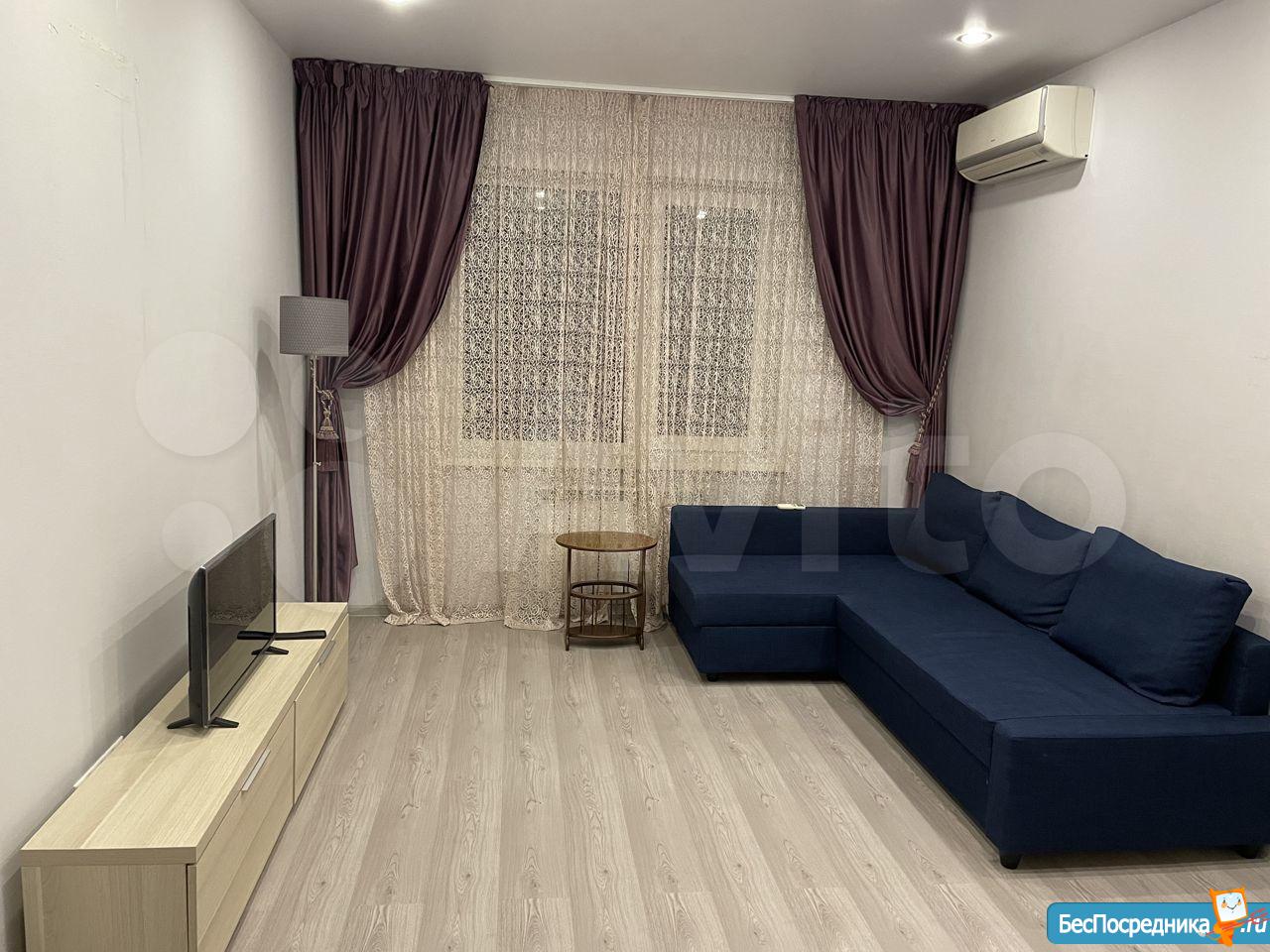В квартире хорошая планировка, большие просторные изолированные комнаты, раздельный санузел. Установлен кондиционер. Из мебели в наличии: кровать, диван, шкаф, комод, новый телевизор, стиральная машина, встроенная кухня с техникой и холодильником, кондиционер, шторы.