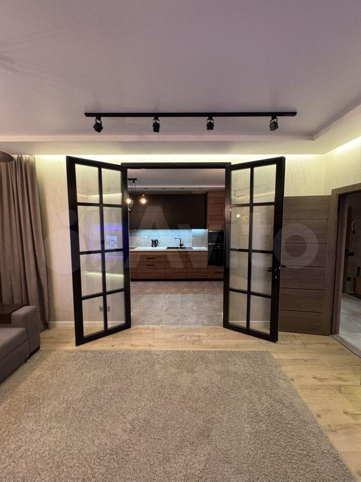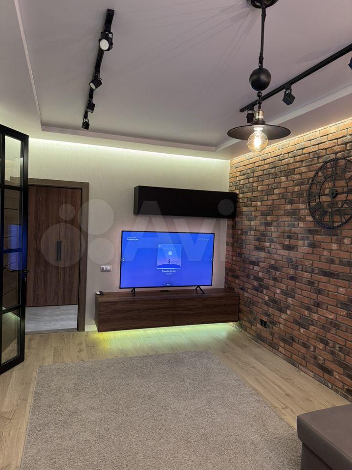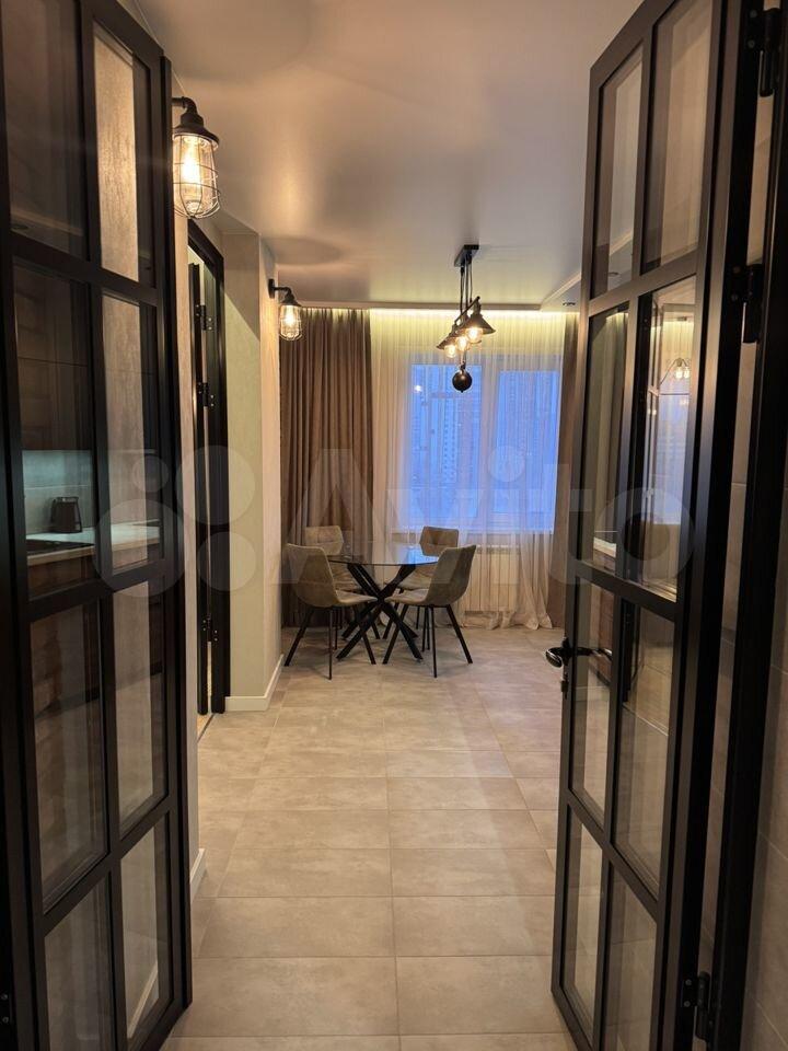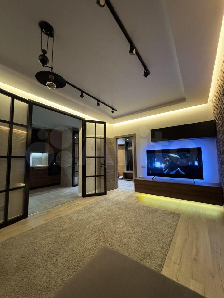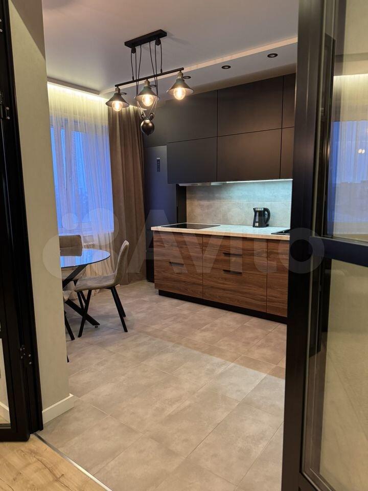 В квартире хорошая планировка, большие просторные изолированные комнаты, раздельный санузел. Установлен кондиционер. Из мебели в наличии: кровать, диван, шкаф, комод, новый телевизор, стиральная машина, встроенная кухня с техникой и холодильником, кондиционер, шторы.