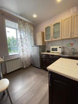 Квартира оборудована всем необходимым: кухонный гарнитур, стол, стулья, печь, холодильник, чайник, стиральная машина, диван , стол.