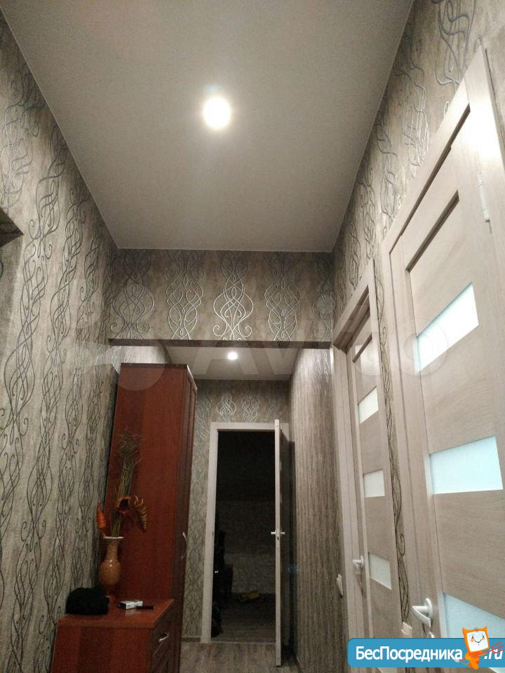 Есть холодильник, 2 дивана, комод, телевизор, стиральная машинка, чайник, посуда. В зале встроенный большой шкаф купе во всю стену. Около него дверь - коморка (можно сделать гардеробную).