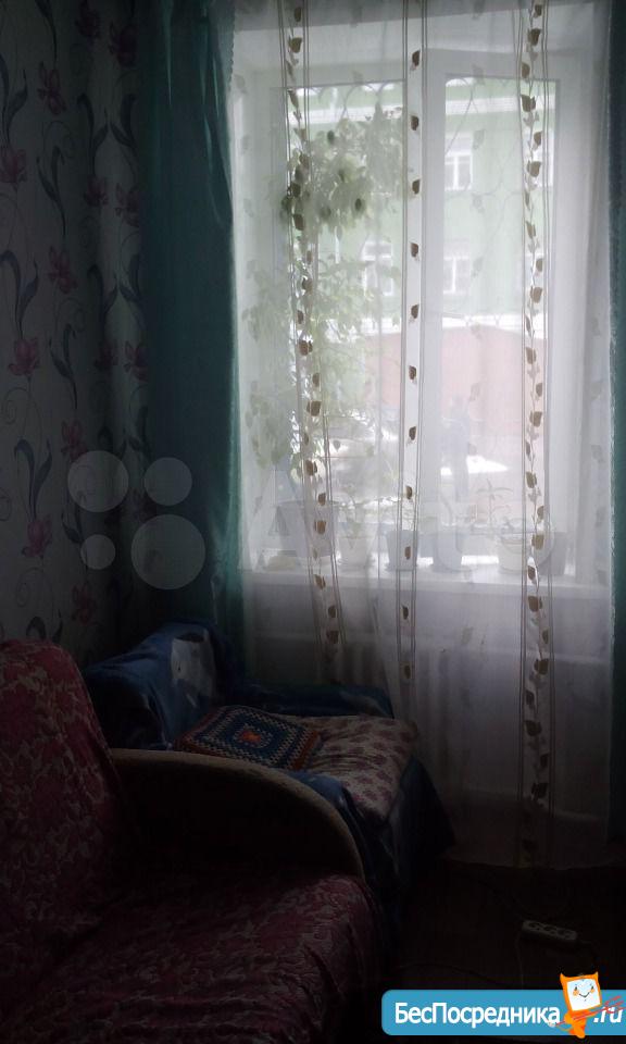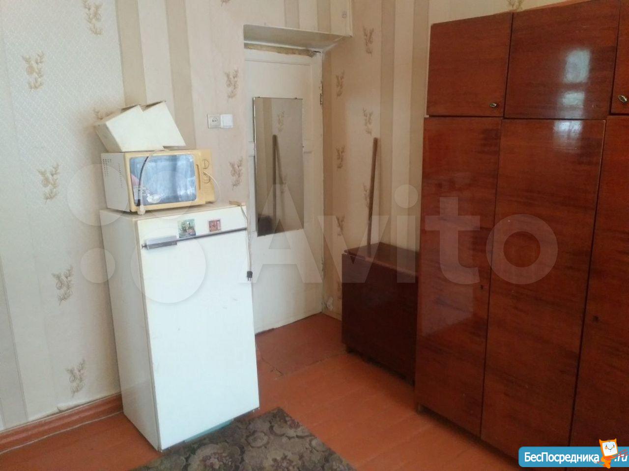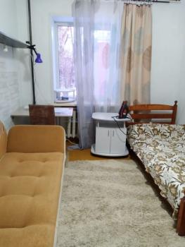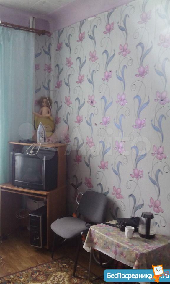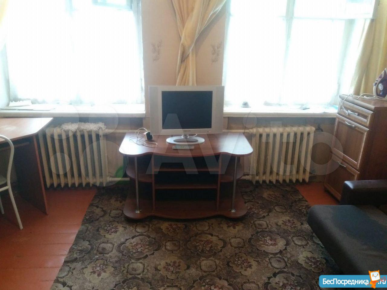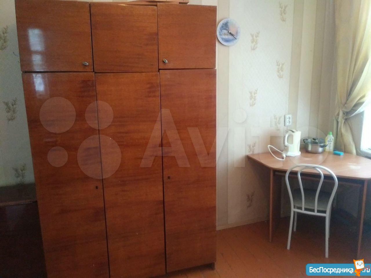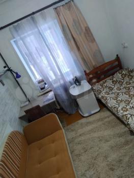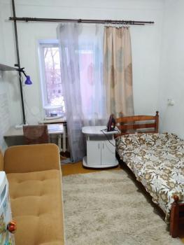 Комната оснащена старенькой мебелью, проведен небольшой косметический ремонт, основной плюс - цена.