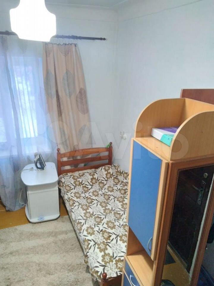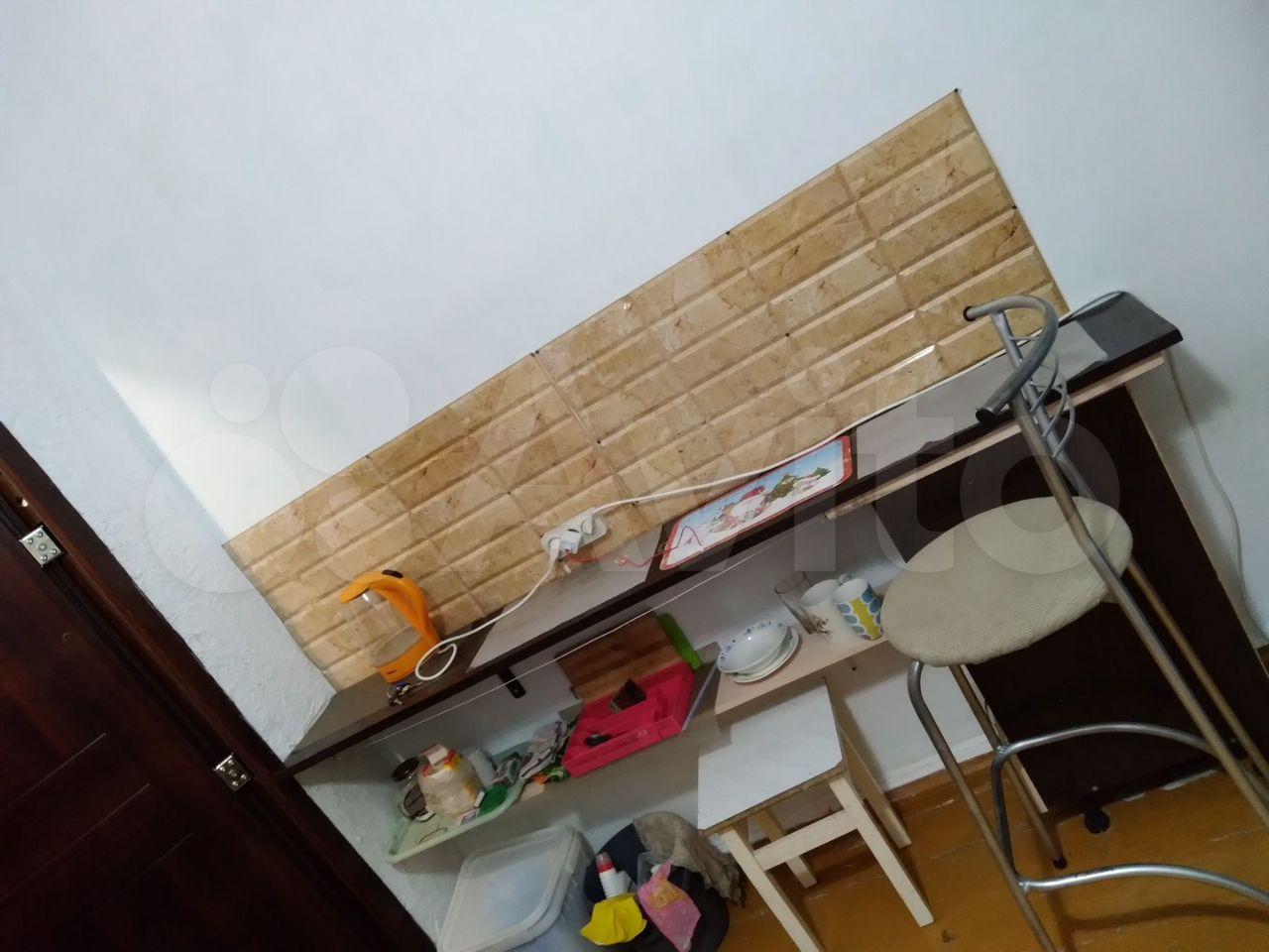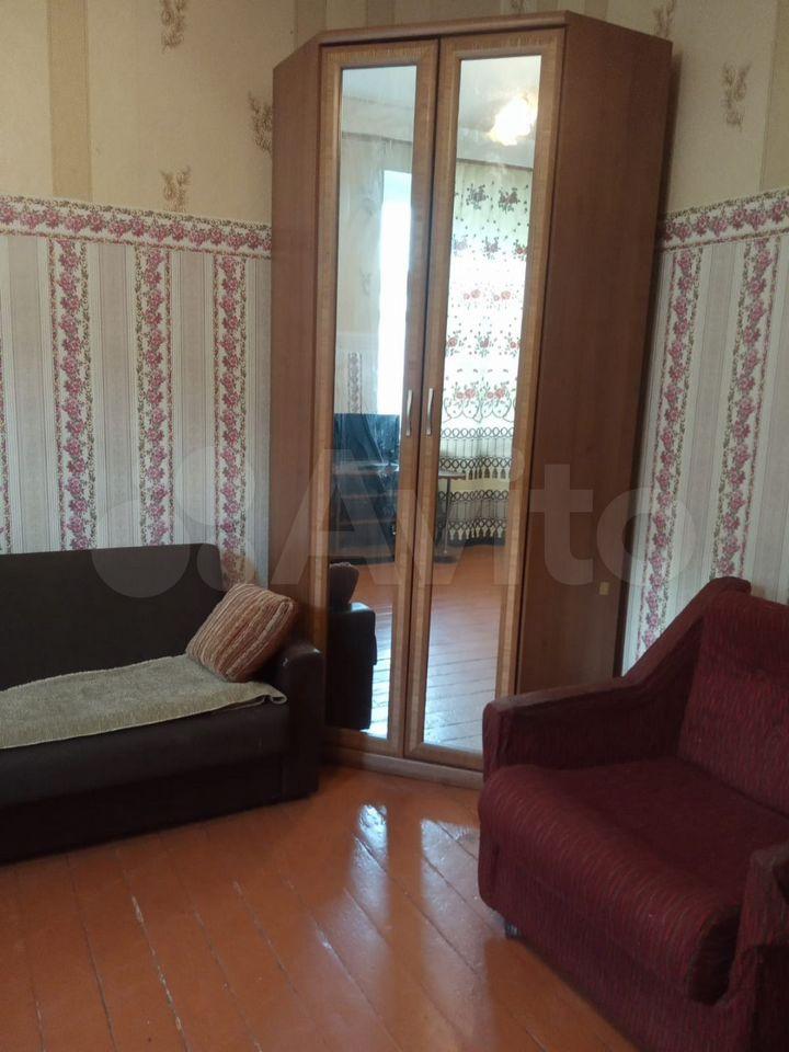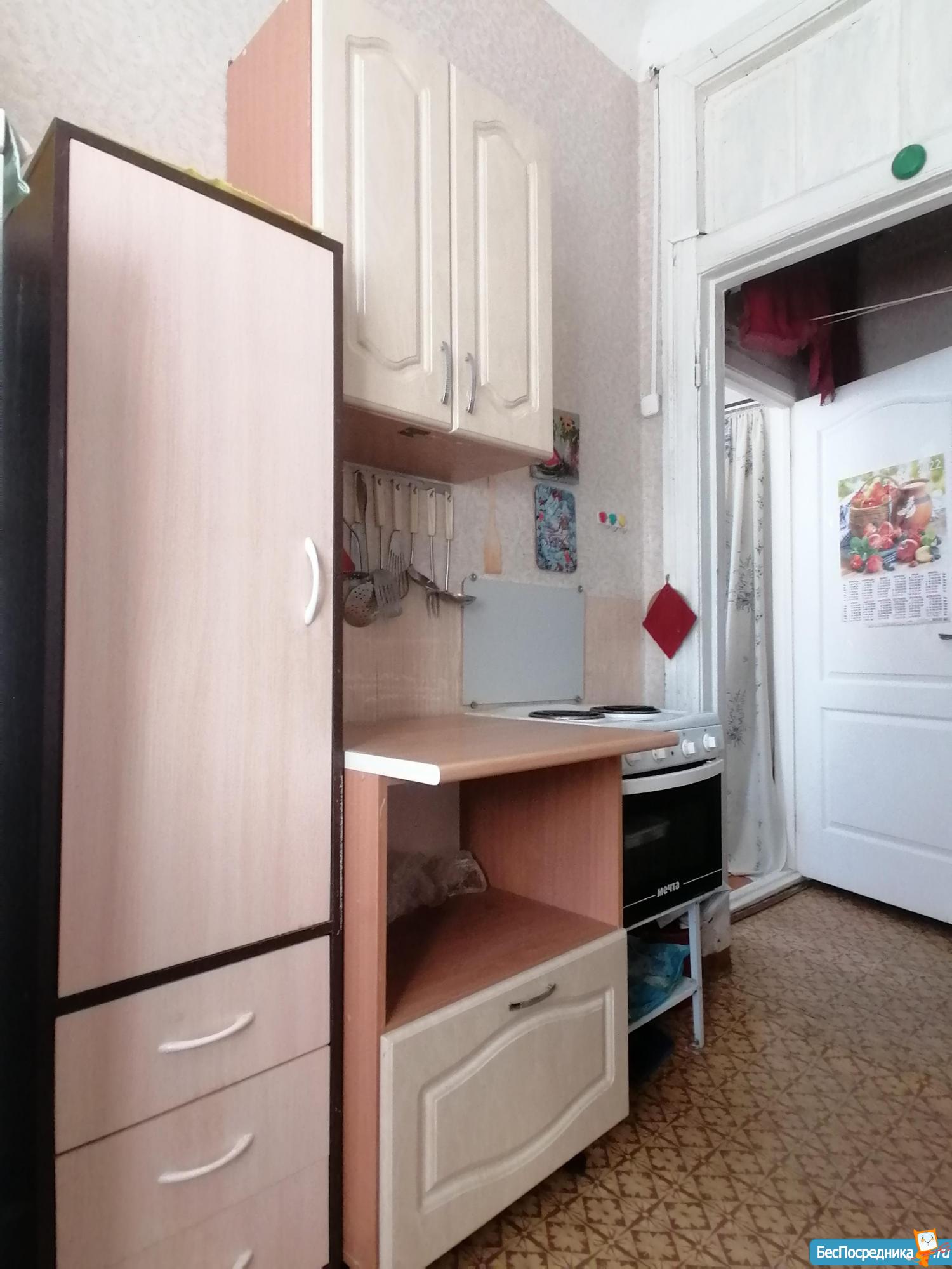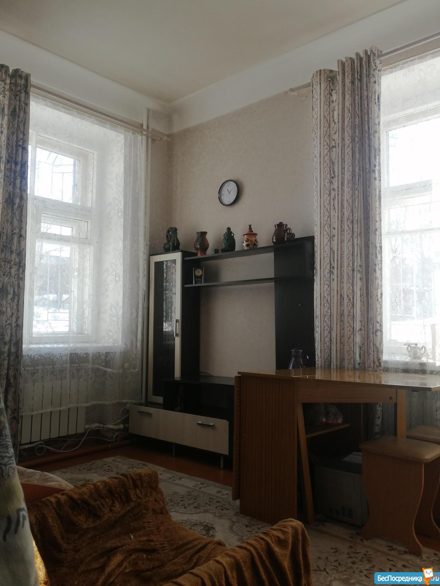 Комната оснащена старенькой мебелью, проведен небольшой косметический ремонт, основной плюс - цена.