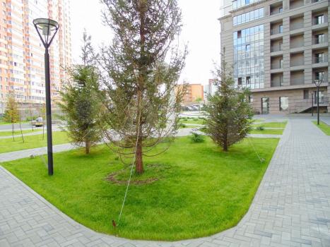 - Во дворе спортплощадка (зимой каток заливают), детская площадка, все чистенько и красиво, много зелени.