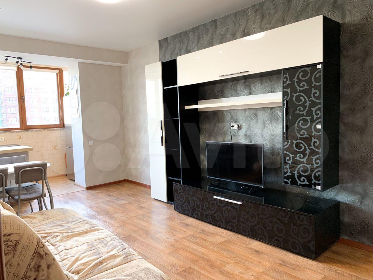 Двухкомнатная студия. Большой застекленный балкон. В кухне: диван двухспальный, кухонный гарнитур, холодильник, индукционная плита и набор посуды к ней, духовой шкаф, чайник, микроволновая печь. В комнате: диван двухспальный, шкаф, стенка-горка. В прихожей: шкаф, полка для обуви и вешалка. Есть небольшая кладовка с полками и штангой для одежды. Сан.узел совмещен. Стиральная машина. Проведен интернет.