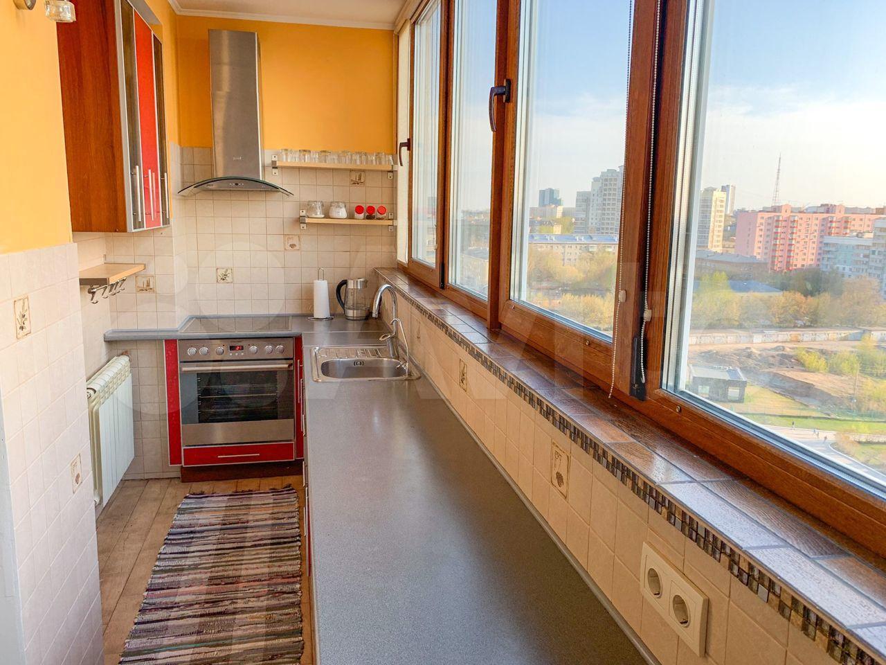 Кухня расположена на лоджии, замечательный вид из окна, в квартире имеется вся бытовая техника и кухонная утварь. Есть кондиционер.