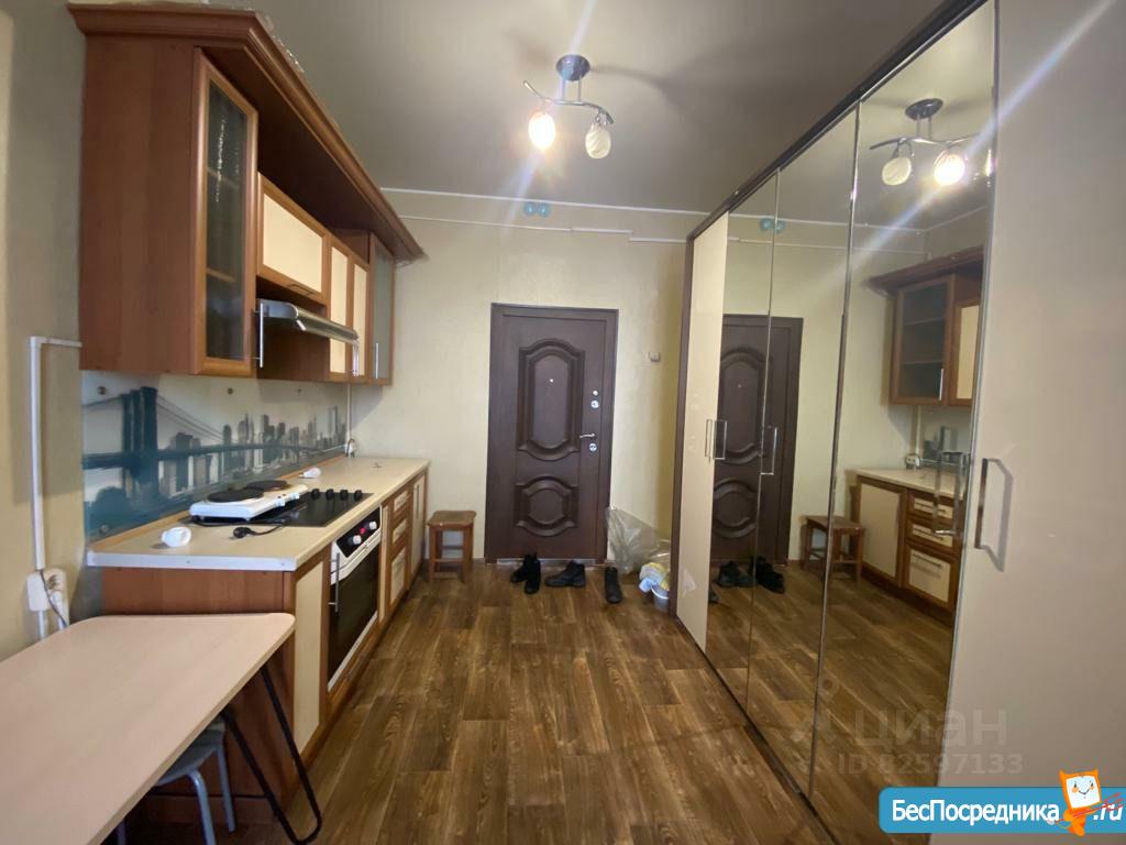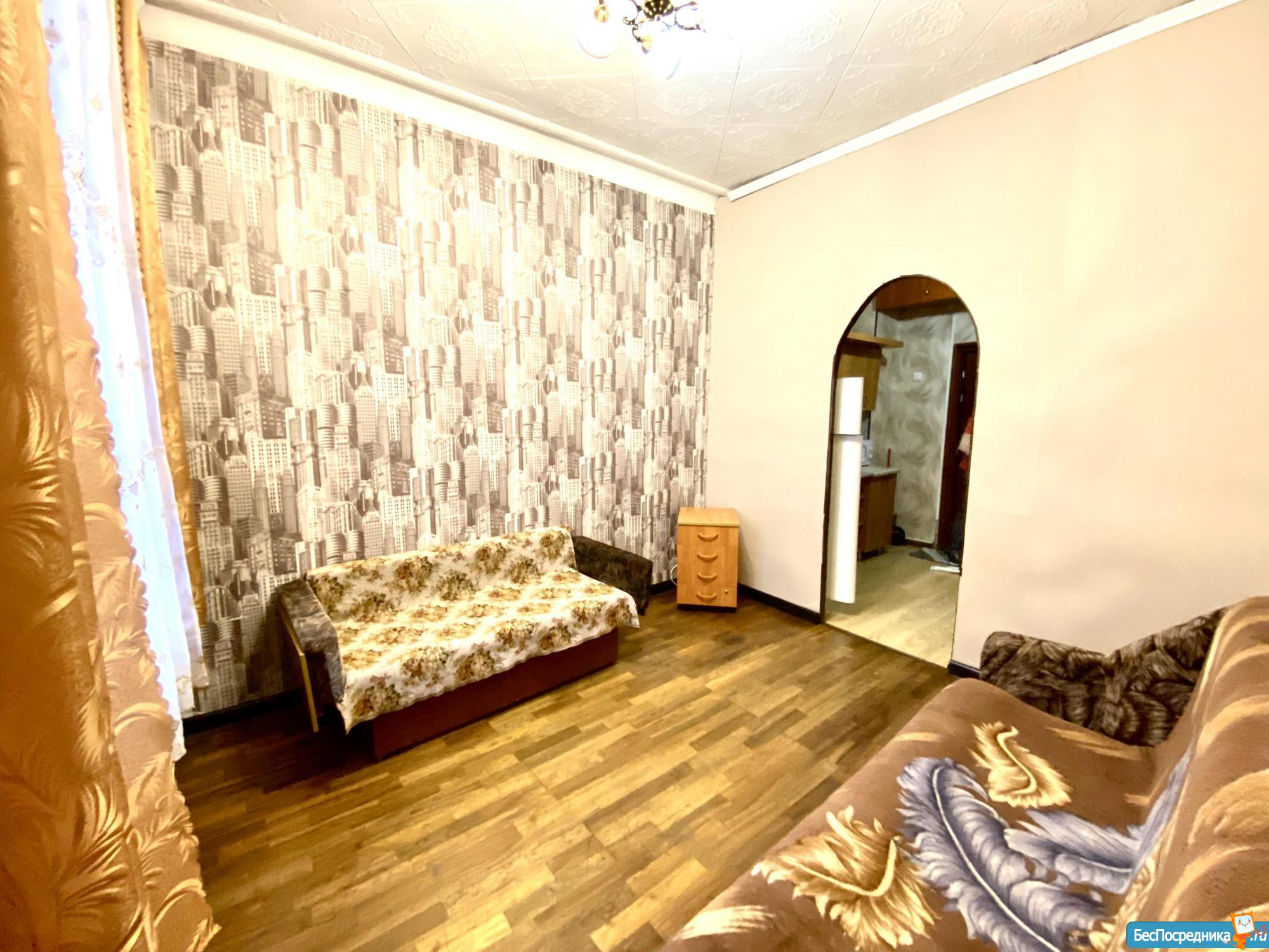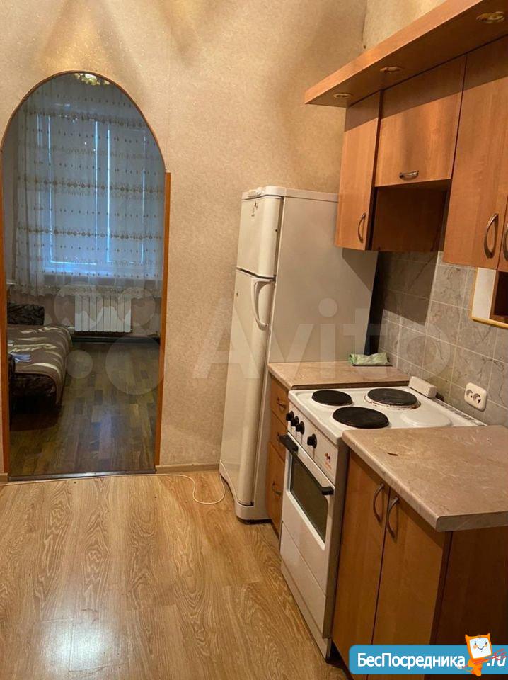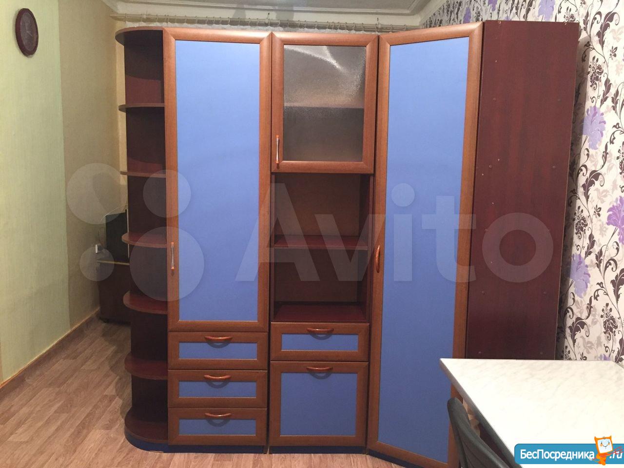 Чистая уютная комната в общежитии (5 этаж) коридорного типа. Комната 19 кв.м. разделена на две, в одной- диван, софа, тумбочка. Во второй -кухонный гарнитур, кухонный уголок со столом, большой угловой шкаф, холодильник, микроволновая печь, эл.плита,чайник. Также имеется стиральная машина. Туалет на этаже, душевые на 1 этаже. Сдается на длительный срок. (Залог 5000 руб.)