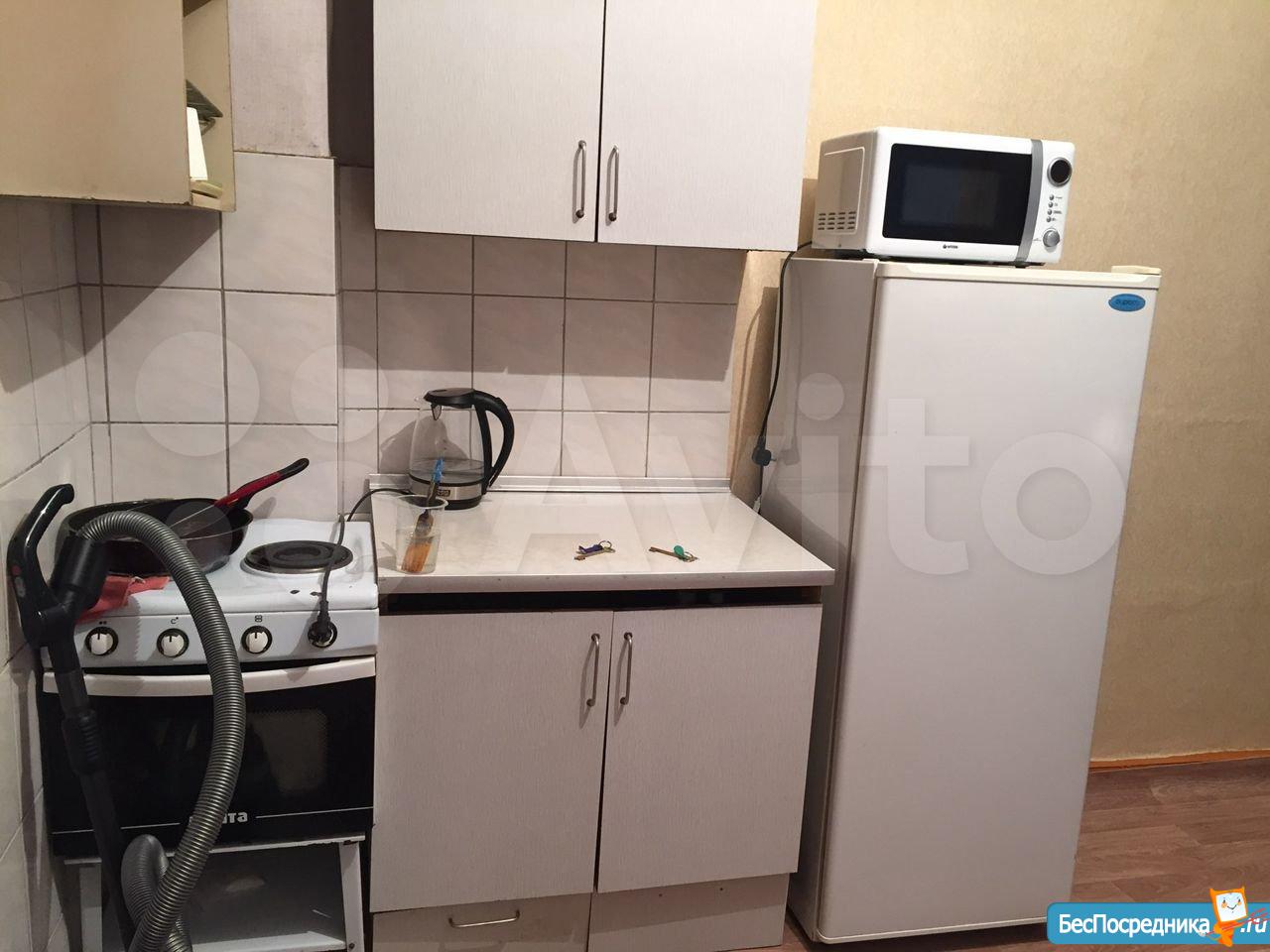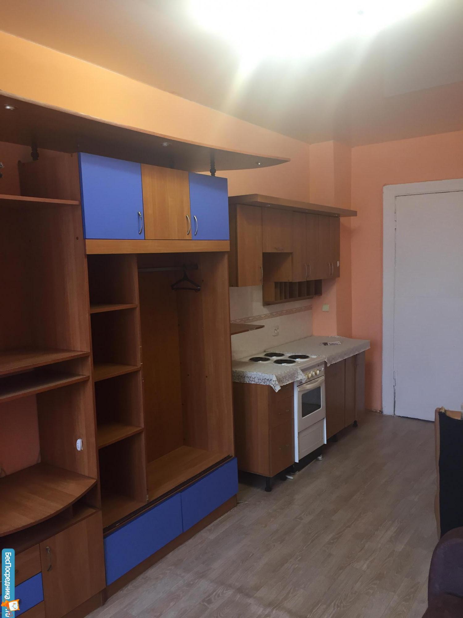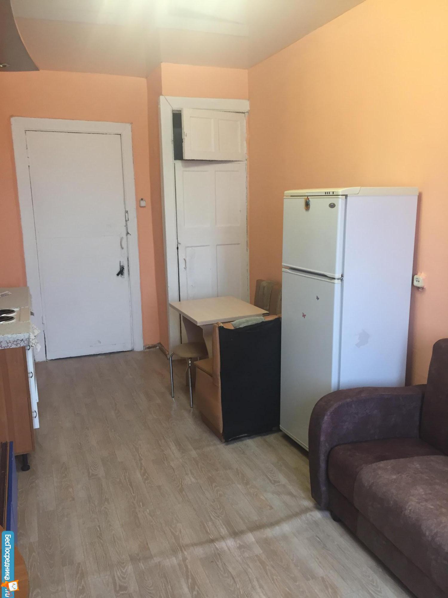 В комнате остаётся вся мебель, бытовая техника: холодильник, микроволновка, стиральная машинка, плита. Воды в комнате нет.