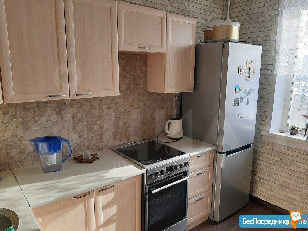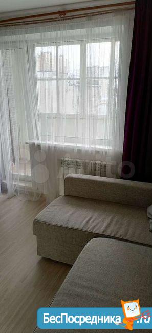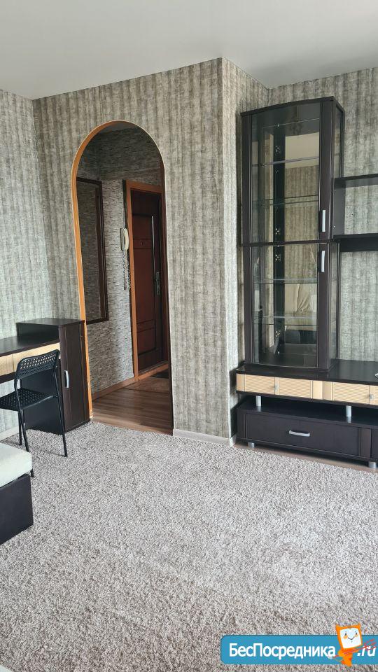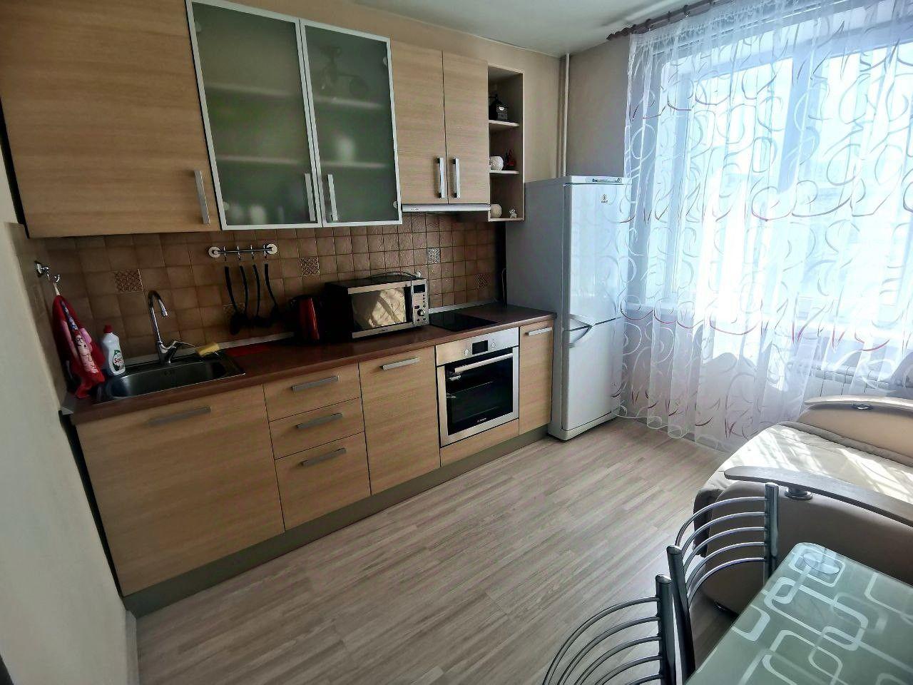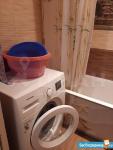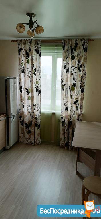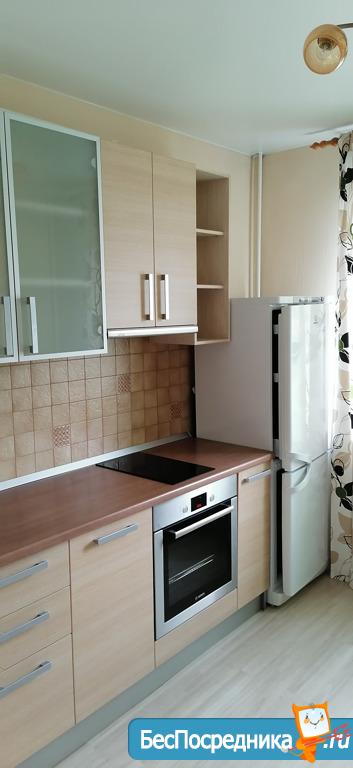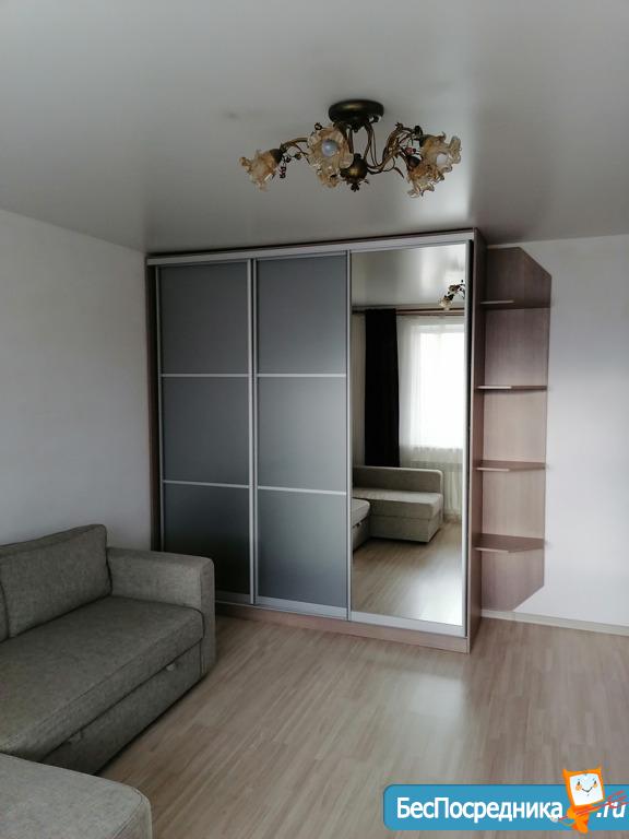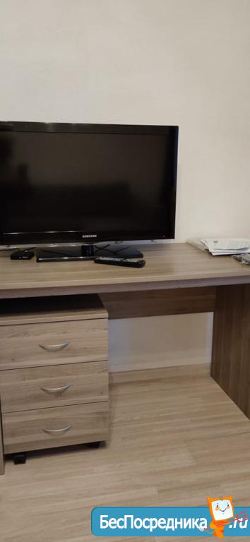 хороший ремонт с ламинатом на полу, новые радиаторы, кухонный гарнитур, телевизор с пирс тв, Wi-Fi, холодильник, большой диван, письменный стол, шкаф, большая лоджия, стиральная машина, гладильная доска и тп.