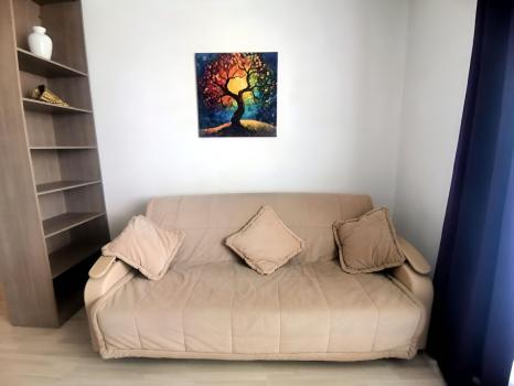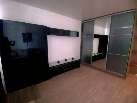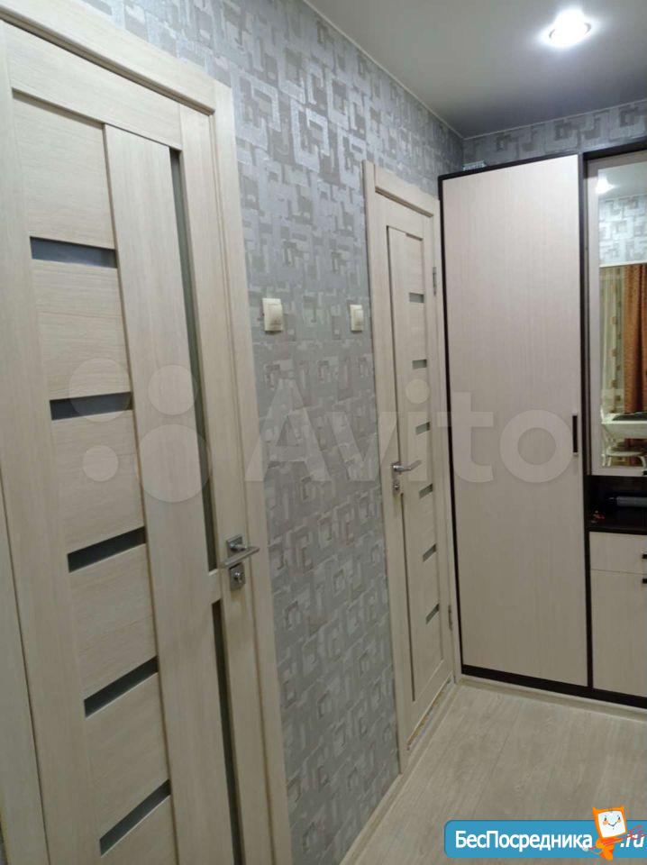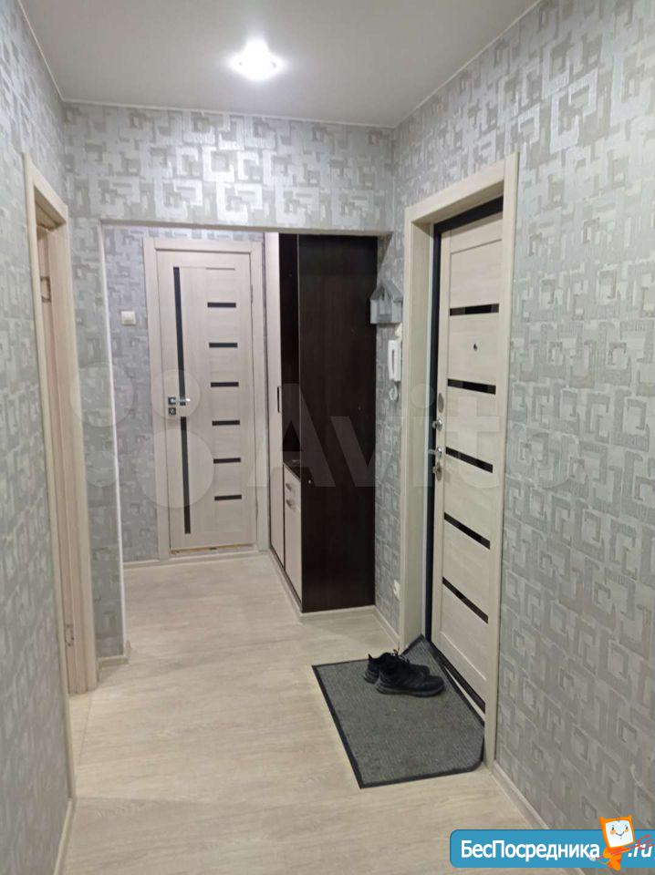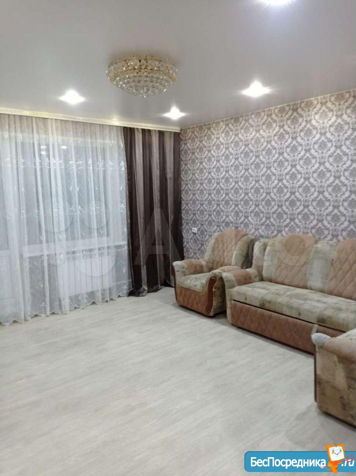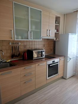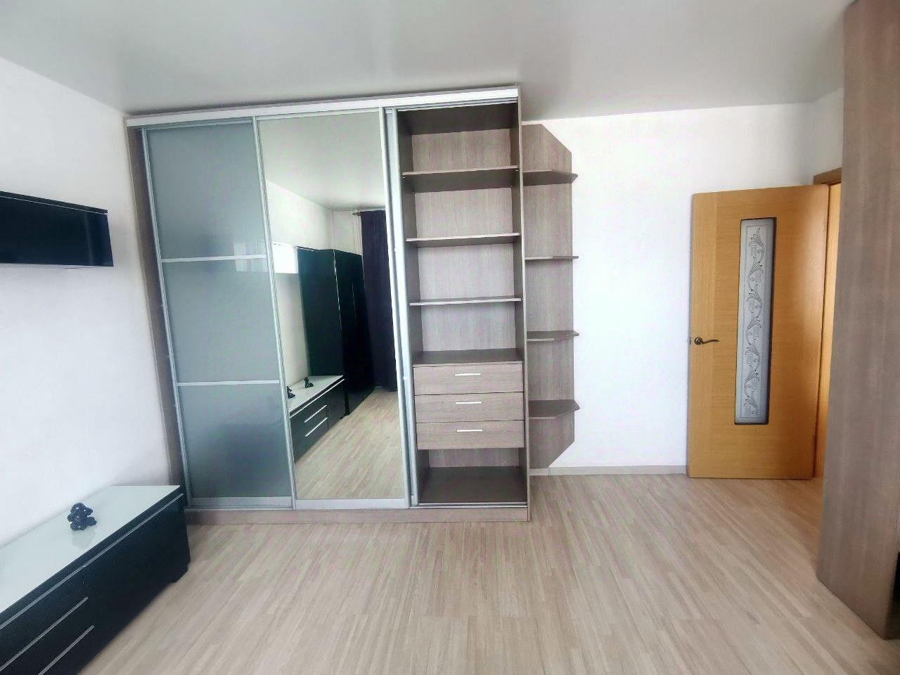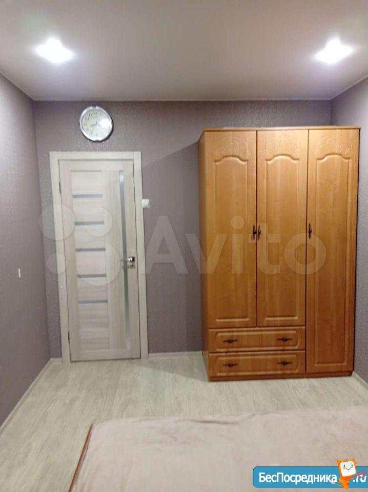 хороший ремонт с ламинатом на полу, новые радиаторы, кухонный гарнитур, телевизор с пирс тв, Wi-Fi, холодильник, большой диван, письменный стол, шкаф, большая лоджия, стиральная машина, гладильная доска и тп.