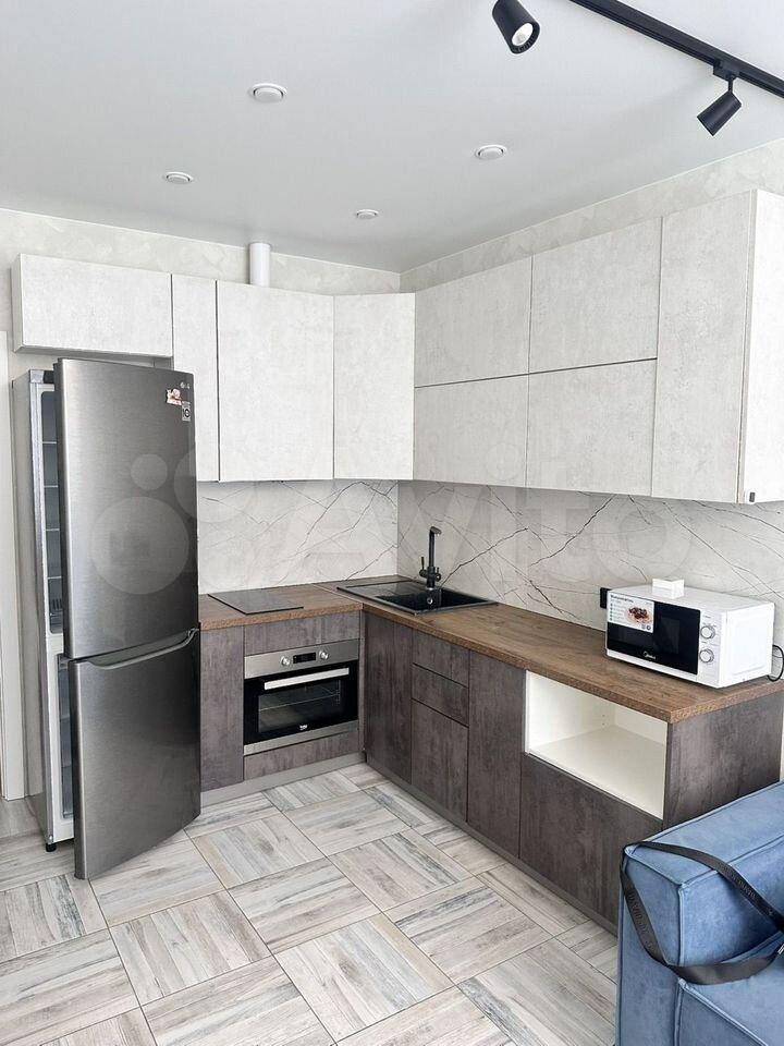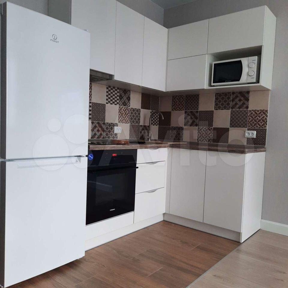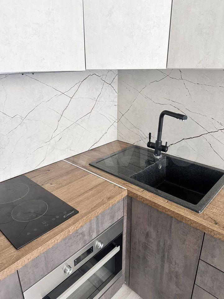 Квартира оснащена всем необходимым: диван, кухонный гарнитур, шкаф (икея) - 2 шт., холодильник, стиральная машинка, варочная панель, духовой шкаф, микроволновая печь, обеденный стол, рабочий стол.