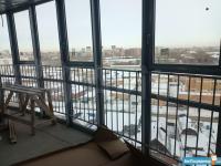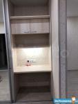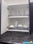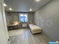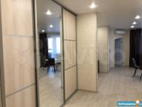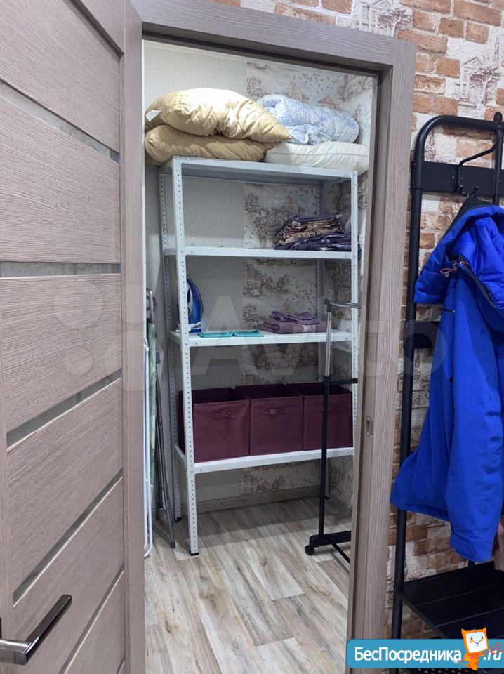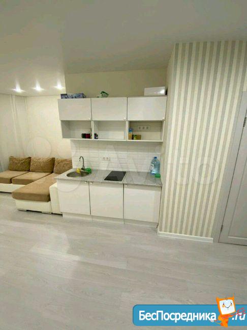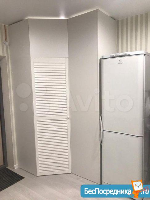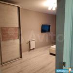 Установили огромный встроенный шкаф в коридоре при входе, в котором также имеется рабочее место и встроенную кухонную зону оснащенную всей необходимой техникой (холодильник, варочная панель, духовой шкаф, микроволновка), а также обеденный стол и стулья. Кондиционер.Телевизор.Диван.