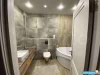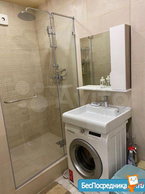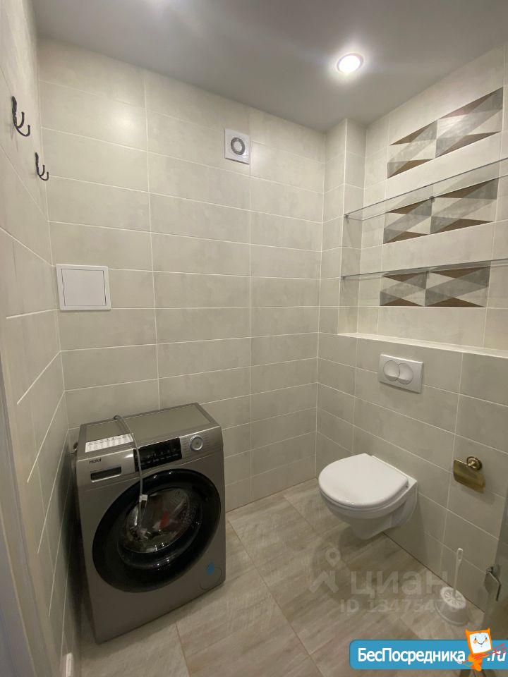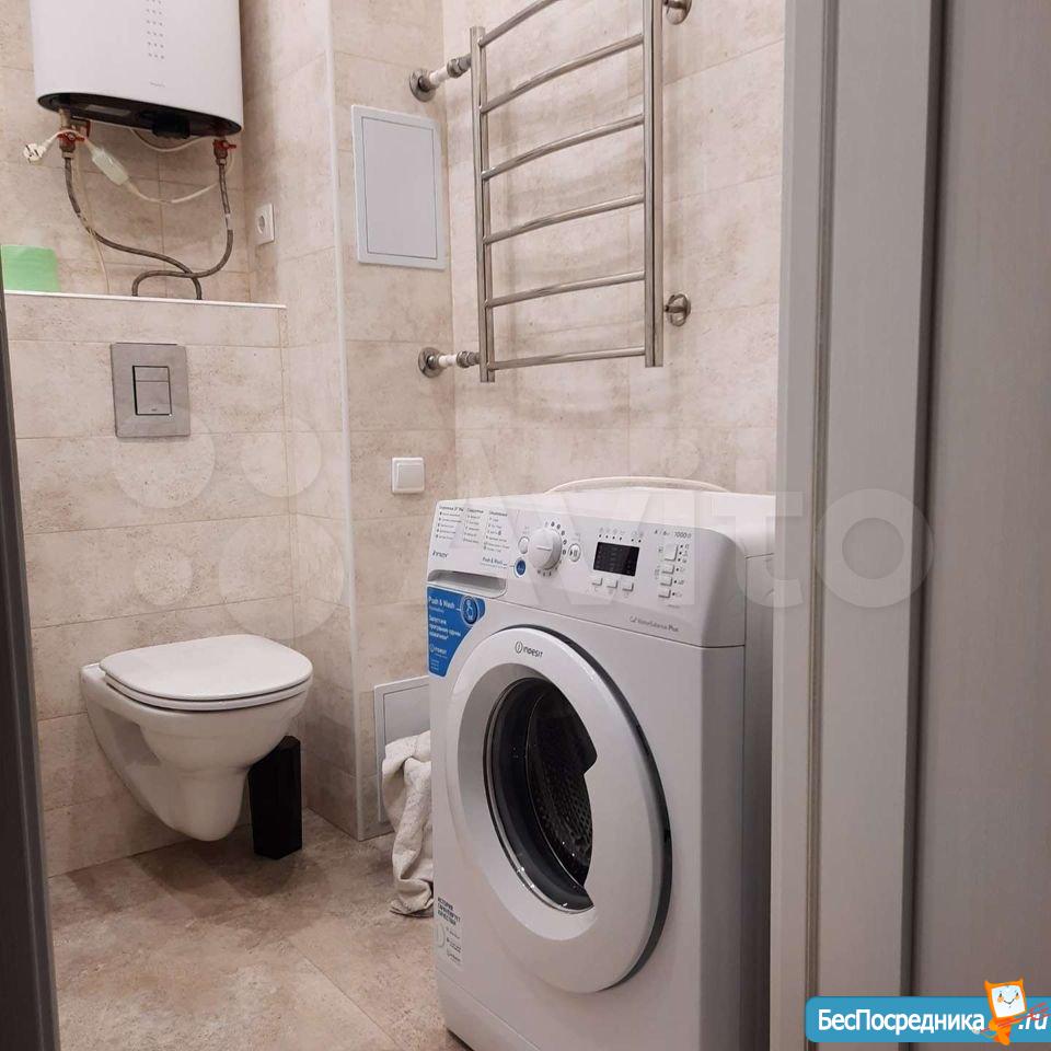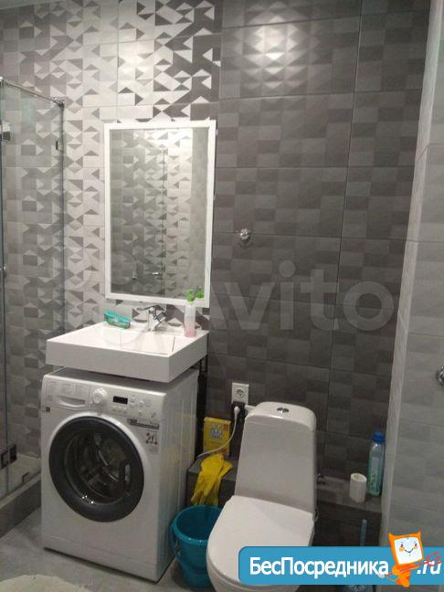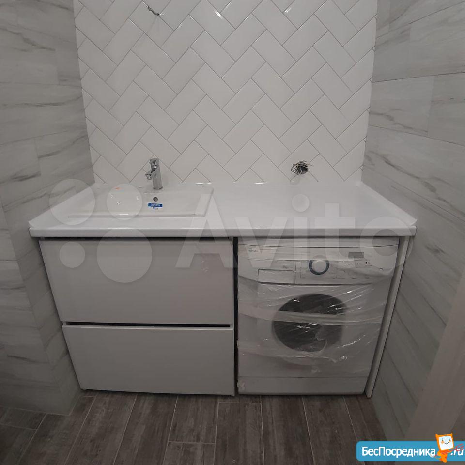 В санузле установлена стиральная машинка, ванная на 170см, унитаз с инсталляцией, раковина.