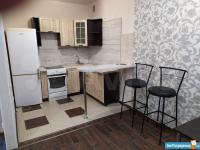 Очень теплая и просторная квартира-студия с выделенной кухонной зоной. В квартире есть вся необходимая мебель (диван, стол, большой шкаф-купе, кухня), есть стиральная машинка автомат, водонагреватель (на случай отключения горячей воды), плита, духовка, холодильник.